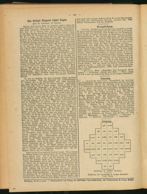 Aus Richard Wagners letzten Tagen. I \ Zum 30. Todestage, 13. Februar. '