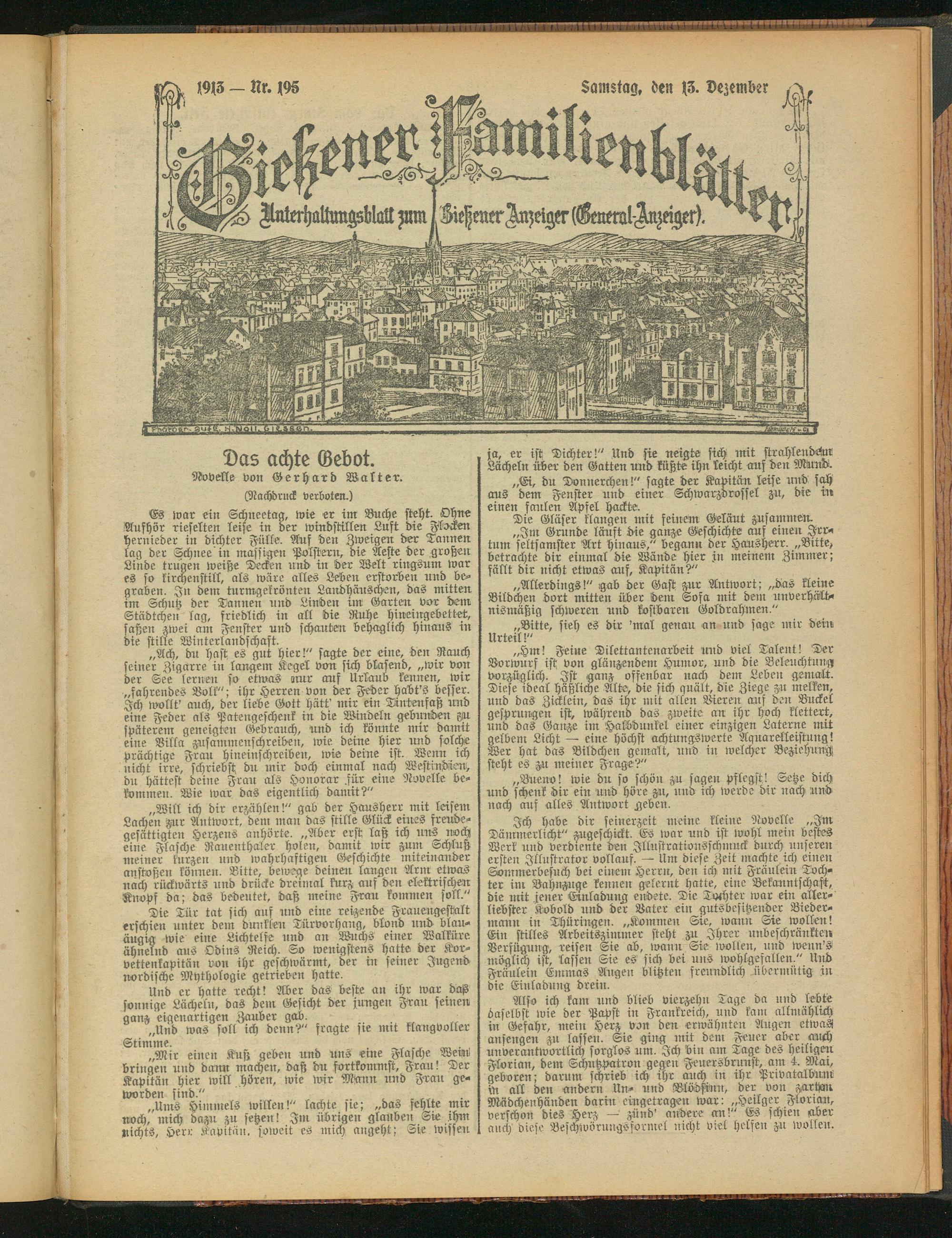 Also ich kam und blieb vierzehn Tage da und lebte daselbst wie der Papst in Frankreich, und kam allmählich in Gefahr, mein Herz von den -erwähnten Augen etwas! ansengen zu lassen. Sie ging mit dem Feuer aber auch unverantwortlich sorglos um. Ich bin am Tage des heiligen Florian, dem Schutzpatron gegen Feuersbrunst, am 4. Mai, geboren; darum schrieb ich ihr auch in ihr Privatalbum in all den andern Un- und Blödsinn, der von zur hau Mädchenhänden darin eingetragen war: „Heilger Florian, verschon dies Herz — zünd' andere an!" Es schien «aber auch diese Beschwörungsformel nicht viel helfen zu wollen.