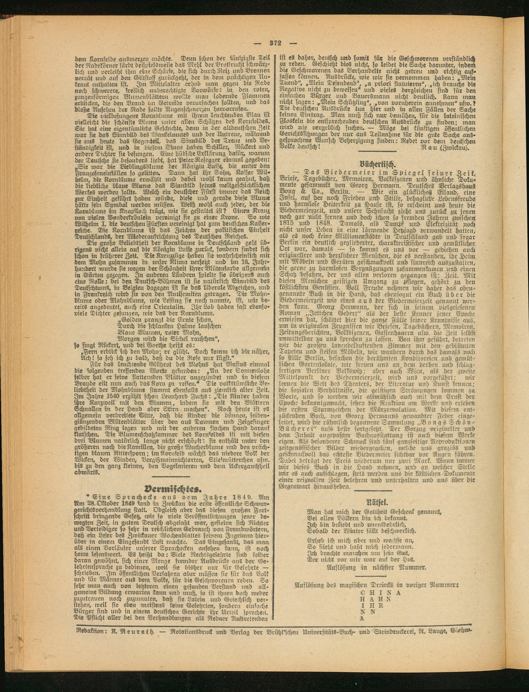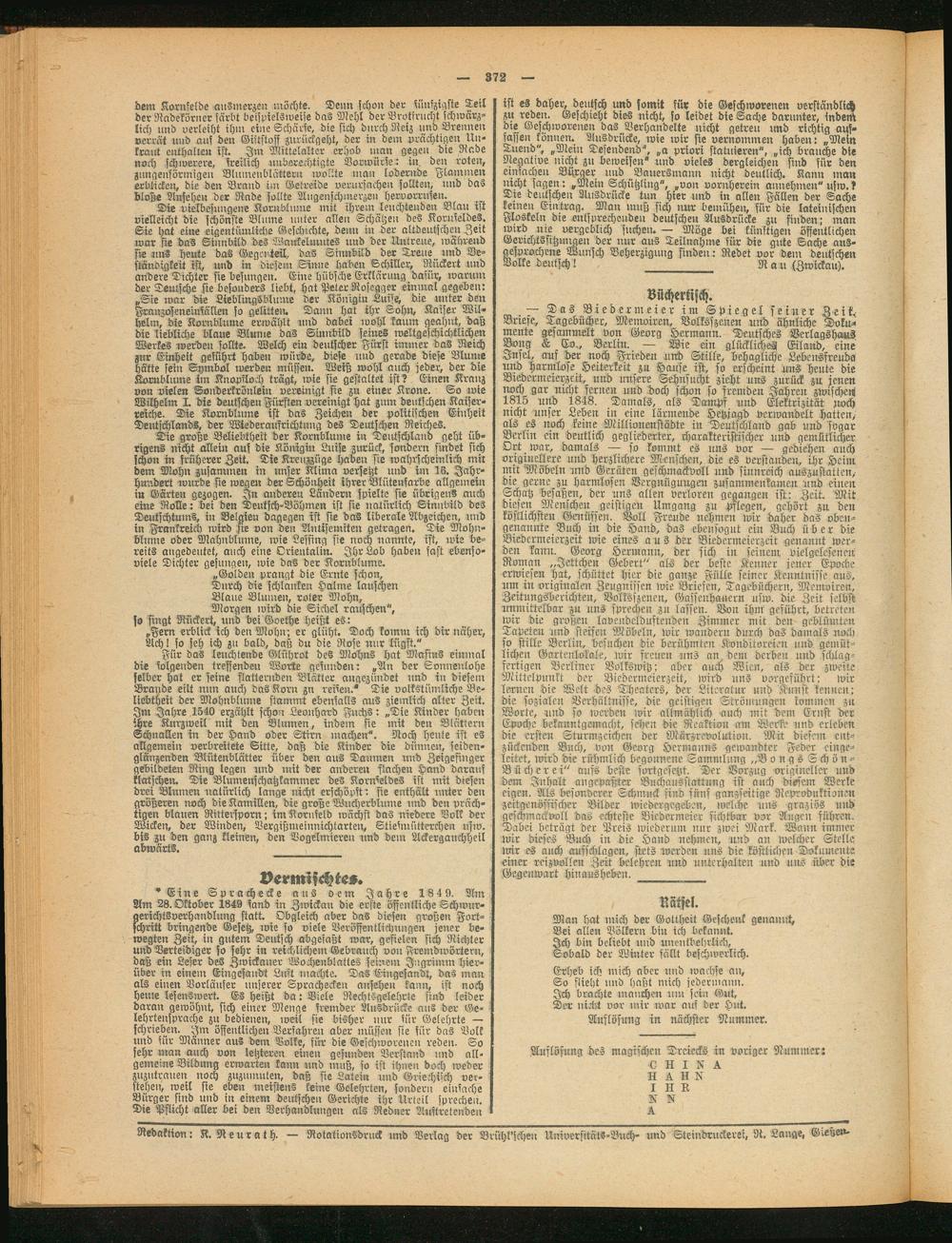 Redaktion: K. Neurath. — Rotationsdruck und Verlag der Brühl'schen Universitäts-Buch- und Steindruckerei, R. Lange, Gießen-
