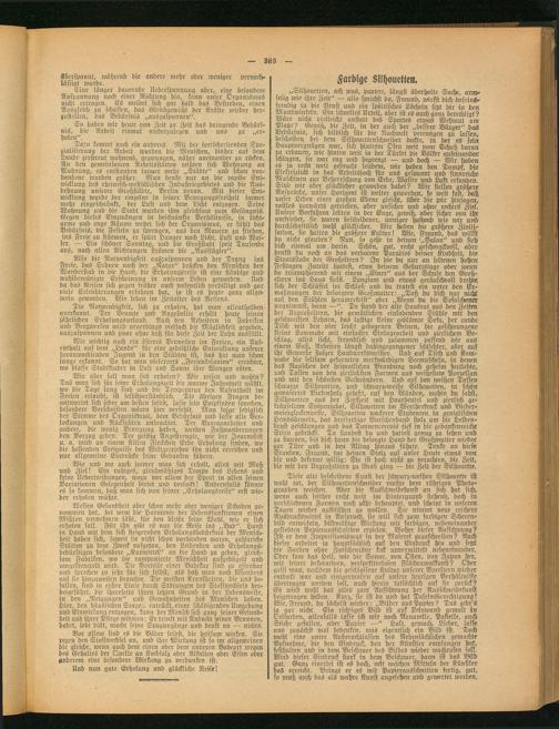 Wie aber soll man sich erholen? Wie reifen und wohin? Das man sich für seine Erholungszeit die warme Jahreszeit wählt, wo die Tage lang sind und die Temperatur den Aufenthalt im Freien erlaubt, ist selbstverständlich. Die übrigen Fragen beantwortet sich jeder am besten selbst, lasse sein Empfinden sprechen, besondere Vorschriften wären hier verfehlt. Man folge lediglich der Stimme des Organismus, dem Bedürfnis und lasse alle Verlockungen und Rücksichten unbeachtet. Der Bureauarbeiter und andere, die wenig.Bewegung haben, werden Fußwanderungen den Vorzug geben. Der geistig Angestrengte, wie der Journalist u. a. wird an einem stillen Fleckchen Erde Erholung finden, wo die hastenden Ereignisse des Weltgetriebes ihn nicht erreichen und nur allgemeine Eindrücke seine Gedanken führen.