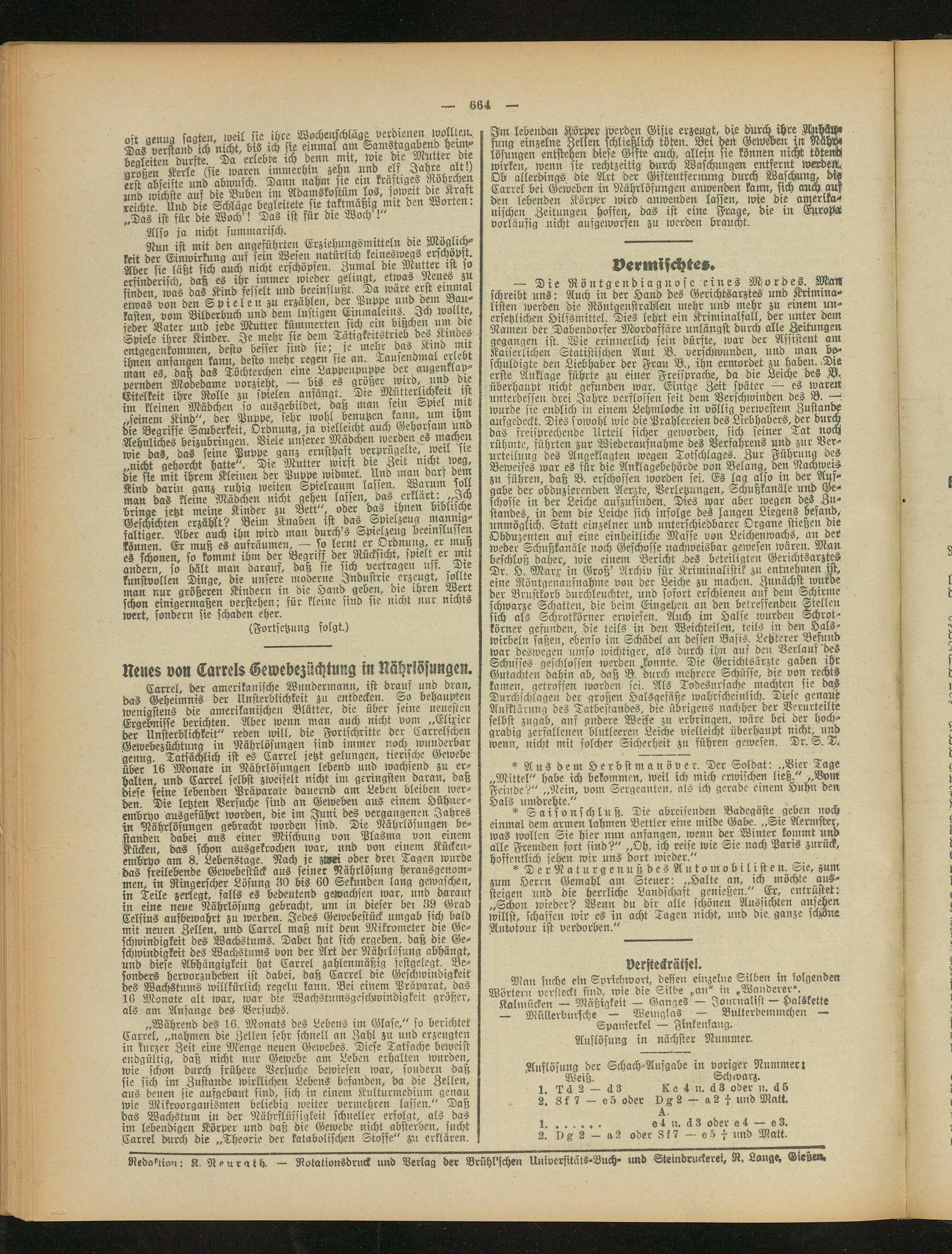 Auflösung der Schach-Aufgabe in voriger Nummer» Weitz. Schivarz.