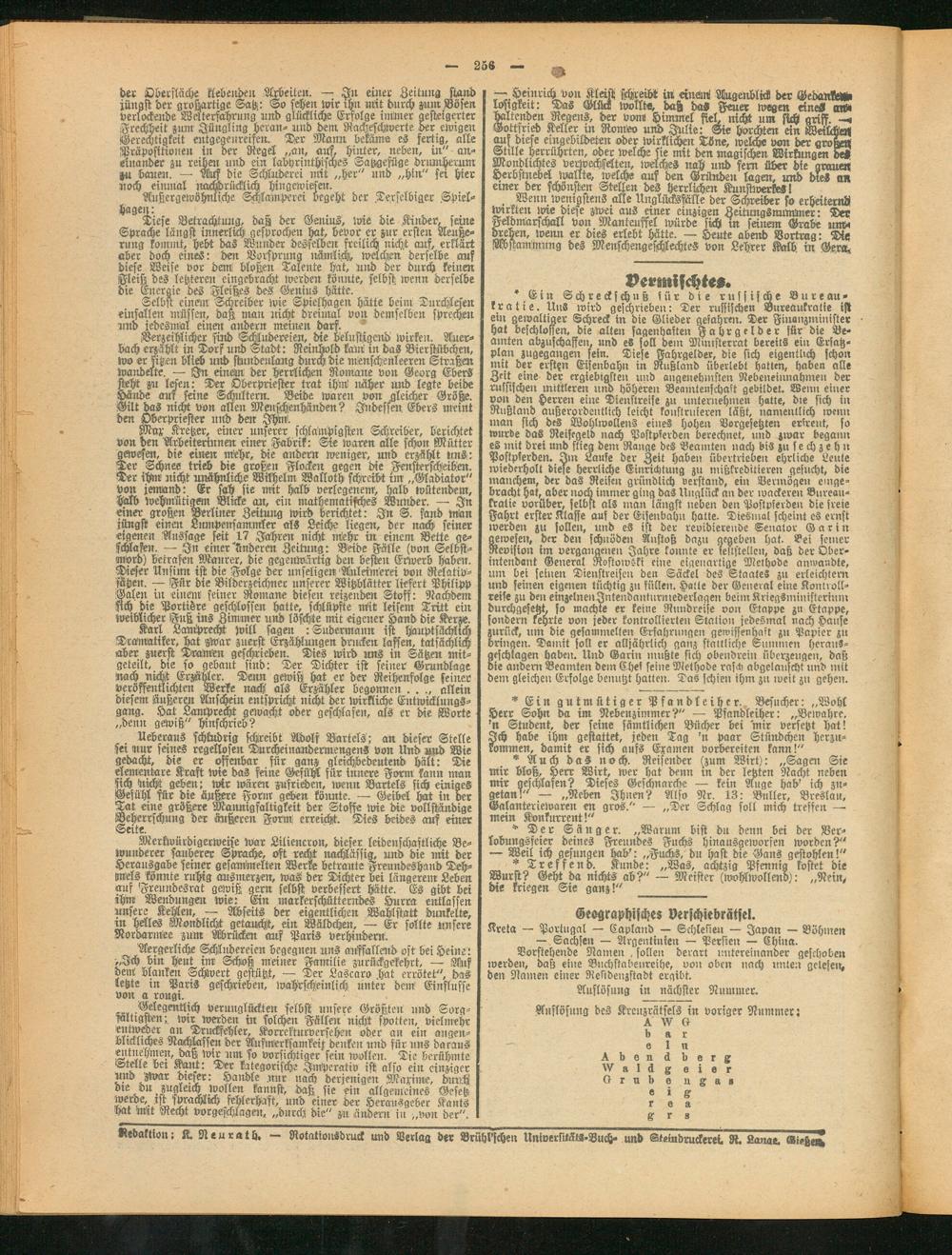 Redaktion: K. Neurath, — Rotationsdruck und Verlag bet Brühl'schen Unioersitäts-Buch- unb Kleindruckeret. R. Lanae. Gießers