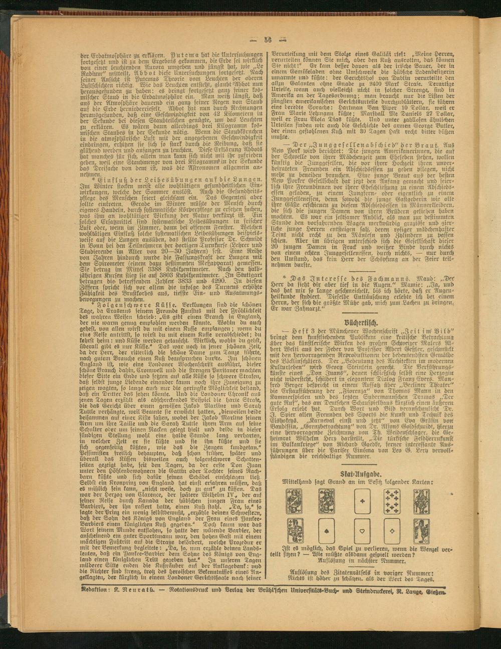 Redaktion: K. Neurath. — Rotationsdruck und Verlag der Briihl'schen Universitäts-Buch- und Steindruckerei, R. Lange, Gießem