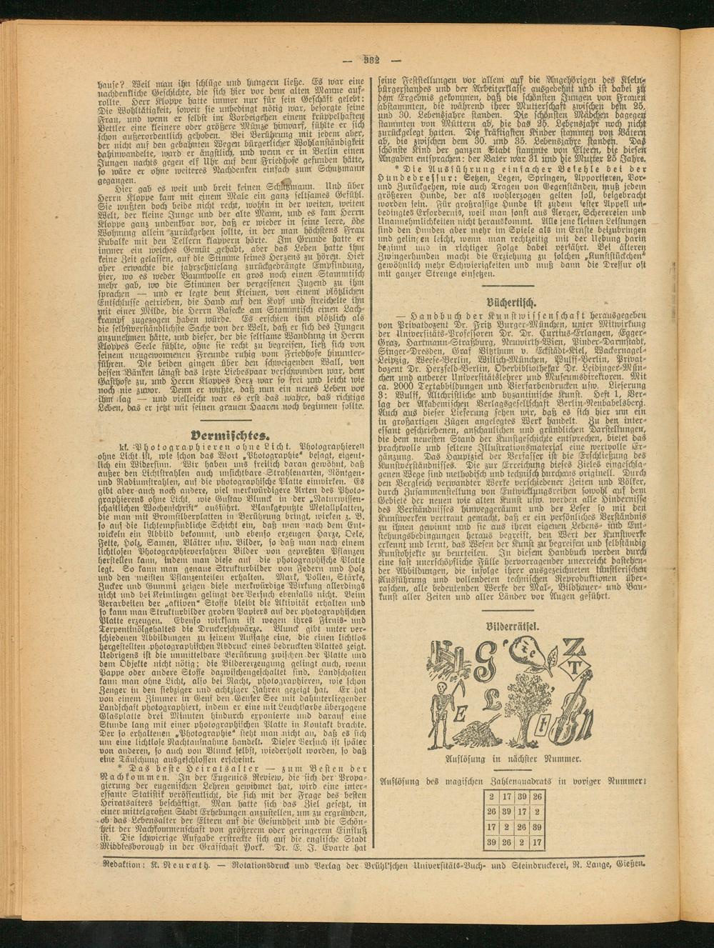 Redaktion: K. Neurat h. — Notationsdruck und Verlag der Brühl'schen Universitäts-Buch- und Steindruckerei, R. Lange, Gießen.