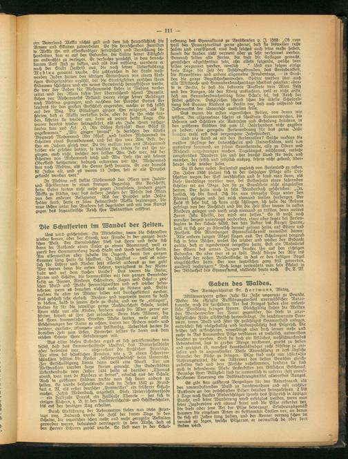 Aus allen diesen Gründen ergab es sich gewissermaßen von selbst daß Das Sommerhalbjahr schulfrei, baji Winterhalbjahr aber' ferienlos war, — abgerechnet Die kirchlichen S^ertage. Nur etwa bei häuslichen Freuden, wie z. D., einem Schweineschlachten fehlten Die Kinder „selbstverständlich beim älnterrichst 3ur Entschuldigung diente Dann wohl eine Wurst. Nur um Weihnachten wurden kurze Ferien gemacht. 3ni DuDerstadter Urkundenbuche vom Jahre 1434 heißt es Darüber: „Thomas avcnb tomi men De KhnDere ut drivet", nämlich aus der Schule Auch in größeren Städten wußte man sich kaum anders zu Helsen So wurde beispielsweise noch im Jahre 1532 zu Fwink- kart a M als erster Deutscher „Qeremetfter em früherer Schuhmacher, Jakob Medenbachs angestMt Dtese Unterrichtsmetbode -Sech Halbjahr Praxis, ein Halbjahr Theorie — hat fw& in einigen Fächern, z. D. in den Landwirtschafts- und Schifferschulen, bis auf Den heutigen Tag erhalten.