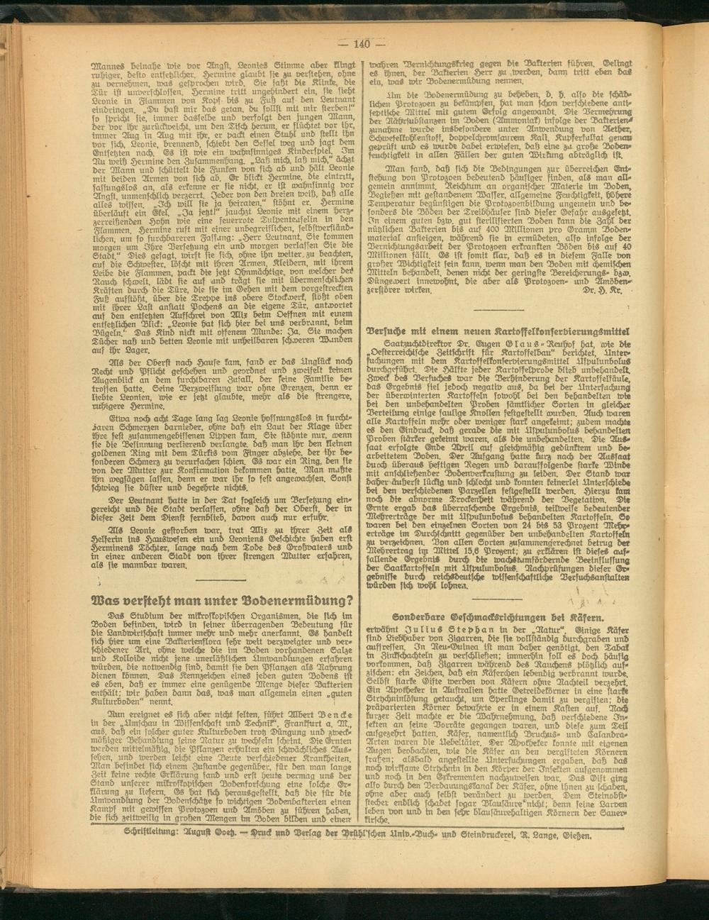 wahren Bernichtungskrieg gegen die Bakterien führen. Gelingt es ihnen, der Bakterien Herr zu werden, dann tritt eben das ein, was wir Bodenermüdung nennen.
