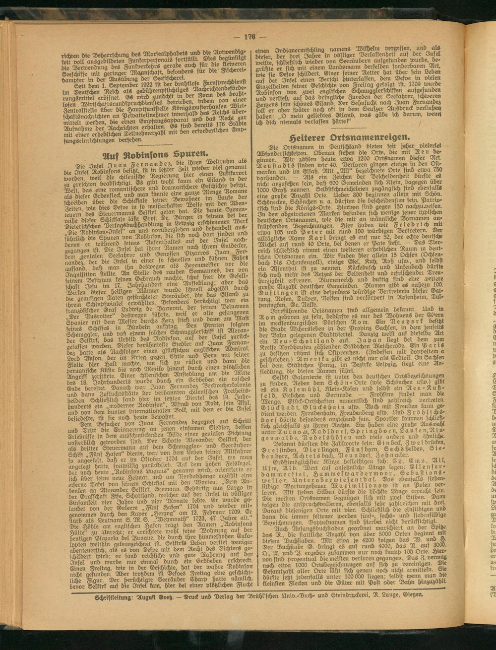 Schristleitung: August Goetz. — Druck und Verlag der Drühttschen Univ.-Buch- und Steindruckerei, D. Lange, Gieren.