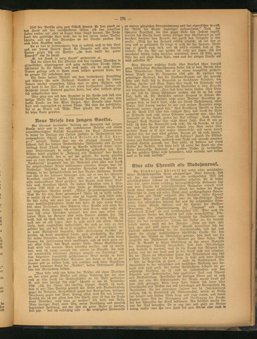Ein überaus wertvoller Beitrag zur Kenntnis des jungen Goethe wird uns in den acht unbekannten Briefen und einem unveröffentlichten Gedicht dargebvten, die Paul Zimmermann in seiner im Berlage von Julius Zwistler in Wolfenbuttel herausgegebenen Schrift „Goethes Briefe an E. Th Lange^' mitteilt. Bisher war nur ein einziges Zeugnis dafür bekannt, das) der spätere Wolfenbütteler Bibliothekar und Freund Lessings Ernst Thevd. Sanger zu Goethe wahrend semer -mp- ziger Studentenzeit in naher Beziehung gestanden hat. Der Dichter selbst erwähnt in „Dichtung und Wahrheit den Harken religiösen Einfluß, den er auf ihn gehabt. So wenig glaubt^ man an diese Einwirkung, das) man die Erwähnung sogar als em Kunstmittel" hingestellt hat; die Wahrheit wird aber nun durch die ausgesiindenen Briese vollkommen erwiesen Langer war Der Rachfolger Behrischs, des intimsten Freundes von Goethe m Leipzig in der Hofmeiflerstelle bei dem Grafen Lmdmau. Swethe trab ihm in der späteren Leipziger Zeit, als erJ>on der schwere grankbeit erariffen wurde, sehr nahe, und an Langer ist der erste nachweisbare Brief gerichtet, den Goethe nach semer Rückkehr nach Frankfurt schrieb. Sn diesem Schreiben vom b Sep- tember 1768 blickt er auf feine Liebe zu Kathchen Schwn.vpff mit folgenden Worten zurück: „Llleine Herzensangelegenheiten. Was' die für eine Tour genommen? Wenn td) selbst wich e, so wollte ich es Ihnen sagen; aber ich begreife Mich selbst nicht. So kalt ruhig, wie man nur am Morgen beim Erwachen nach einer wohldurchschlafenen Rächt fern kann, ist letzo rneme Seele still, ohne Berlangen, ohne Schmerz, oyne Freude und ohne Si- innerung Seht, Langer, ich erinnere Mich Eurer nicht mehr als man sich eines Menschen erinnert, den man zum ersten urtb letzten Male im Konzert oder beim Souper gesehen hat. Sch weist dah ich Euch liebe; und doch kann ich es nicht fühlen, ich muh mir es erst sagen. And so geht mir s mit allem. Werne Liebe, diese unglückliche Leidenschaft, die mich zu viel, zu viel gekostet hat, als dah ich es je vergessen lollte, ist verscharrt, tie, in mein Gedächtnis begraben, kalte Zerstreuung damber geworfen ich denke manchmal daran, ganz gleichgültig. Em Glua str meine Situation, und Lieber, ich fürchte, es wird nicht lange dauern die Zerstreuung wird wegfliegen, und es wird ganz vor mir offen stehen, das Grab meiner Liebe. Meine Einbildungskraft wird mit meinem Blute lebendig werden, und ich Werwe fein, was ich lange voraus sah, mitten im Gsnusse, der mich mit paradiesisch beladenen Zweigen umgiot,.ein SantaUjS. -Sn dem folgenden französisch geschriebenen, Brief spricht er dann von den vielen dichterischeii Arbeiten, mit denen er sich zu zerstreuen und zu trösten sucht, und erwähnt auch seine Beziehung zu dem frommen Kreis der „Brüder", dessen Mittelpunkt Fraulein von Klettenberg bildete.