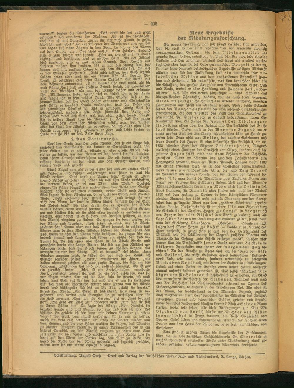Schriftleitung: August Goetz. — Druck und Verlag der Brühl'schen Llniv^Buch. und Steindruckerei, R. Lange, Dieben.