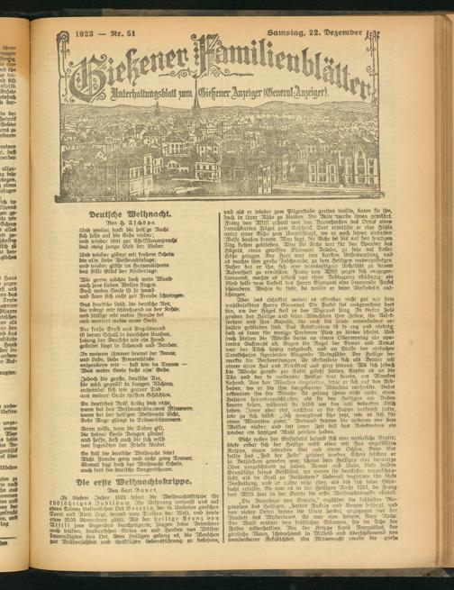 Du deutsches Volk, belüg dich nicht, wenn bei des Wrihnachlsbaumes Flimmen», wenn bei der heil'gen 'Weihnacht Licht, Dein Auge glänzt in Tränenschimmern, Dann wisse, wem die Träne gilt, die deiner Seele Dangen zündet und hoffe, datz auch dir sich mild i>on irgendwo der Friede kündet.