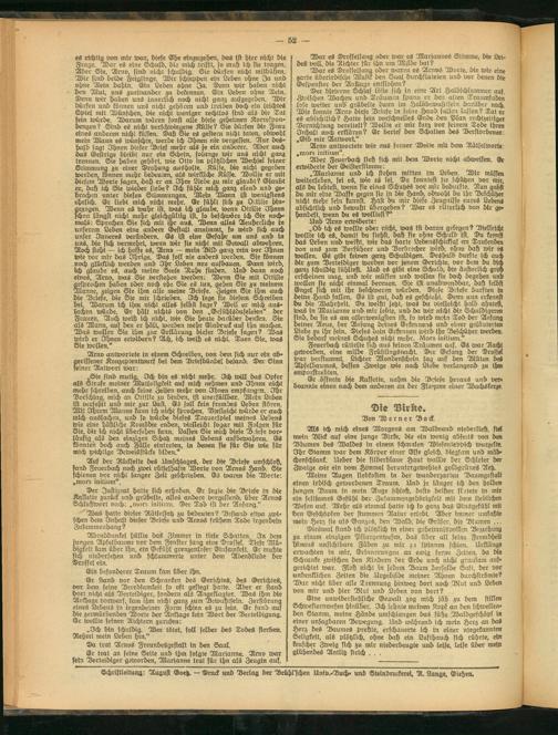 Eine unwiderstehliche Gewalt zog mich jäh zu dem stillen Schwesternwefen hinüber. Och lehnte meinen Kopf an den schwellenden Stamm, meine Hände umschlangen das süße Waldgeschöpf in einer unsagbaren Bewegung. And während ich mein Herz an das Herz des Baumes preßte, erschauerte ich in einer niegekannten Seligkeit, als plötzlich, ohne daß ein Lufthauch sich rührte, eilt keuscher Zweig sich zu mir niederbeugte und leise, leise über mein glühendes Antlitz strich . . .