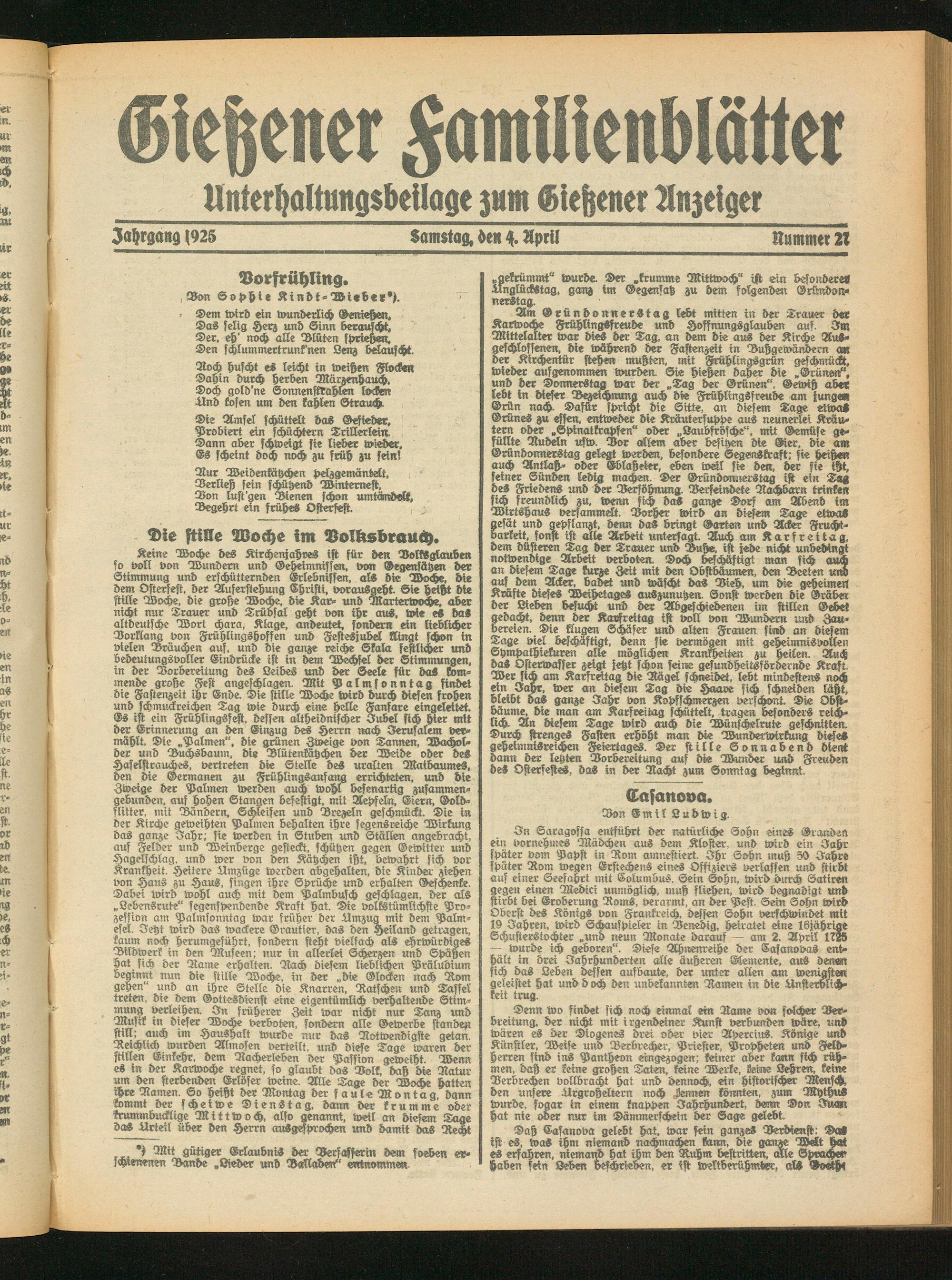Jahrgang (925 Samstag, -en 4. April Nummer 21