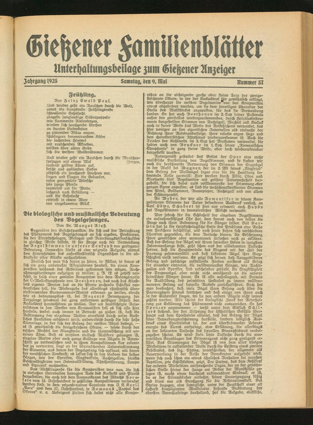 Jahrgang (925 Samstag, den 9. Mai ~ Nummer 37