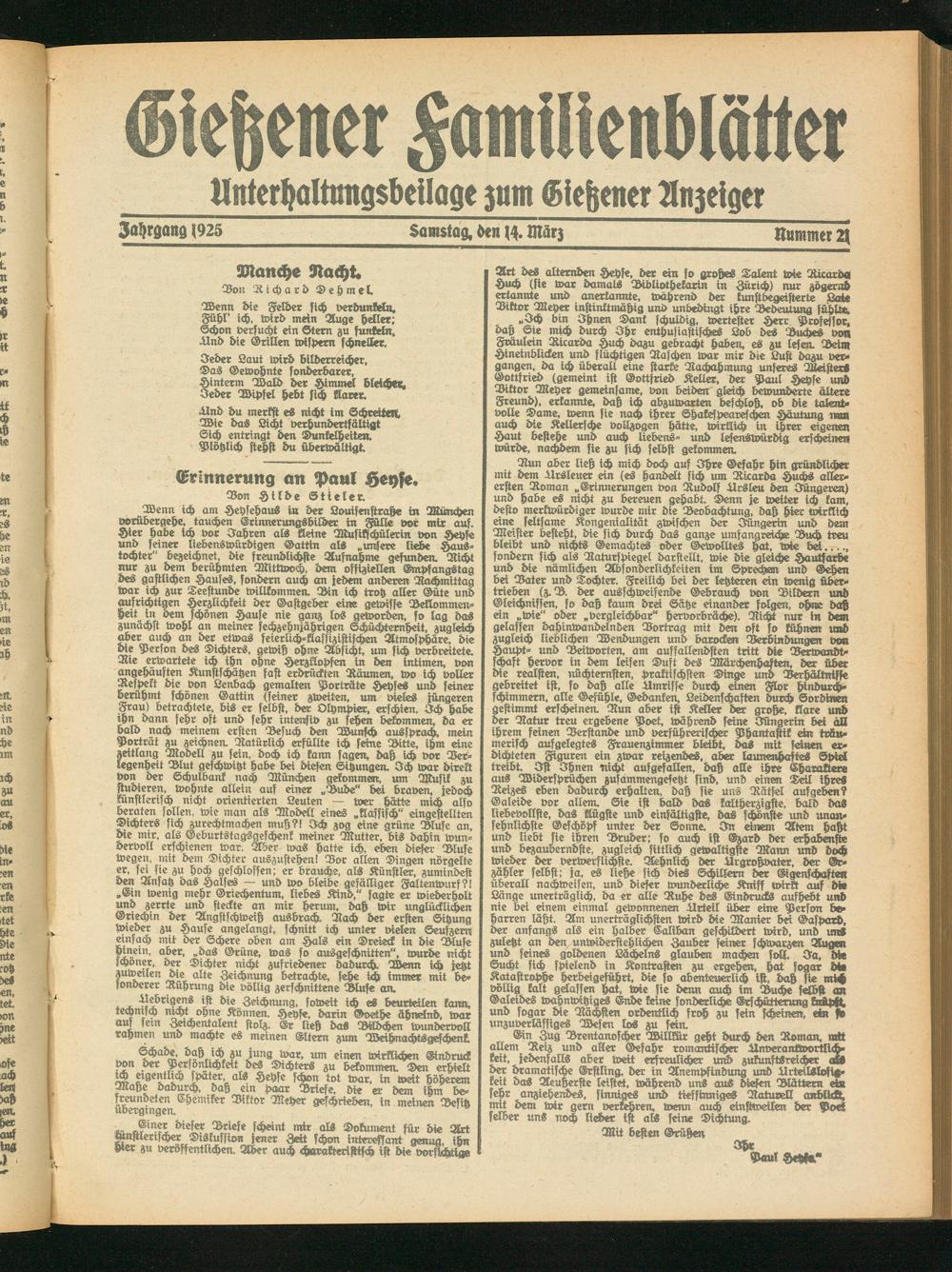 Erinnerung an Paul Heyse.