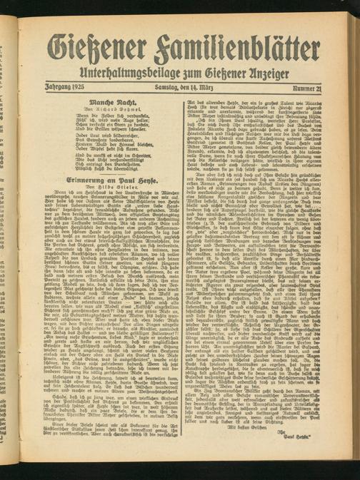 Schade, daß ich zu jung war. um einen wirklichen Eindruck von der Personllchkett des Dichters zu bekommen. Den erhielt ich eigentlich spater als Heyfe schon tot war, in weit höherem Maße dadurch, daß em paar Briefe, die er dem ihm befreundeten Chemiker Viktor Meyer geschrieben, in meinen Besitz übergingen.