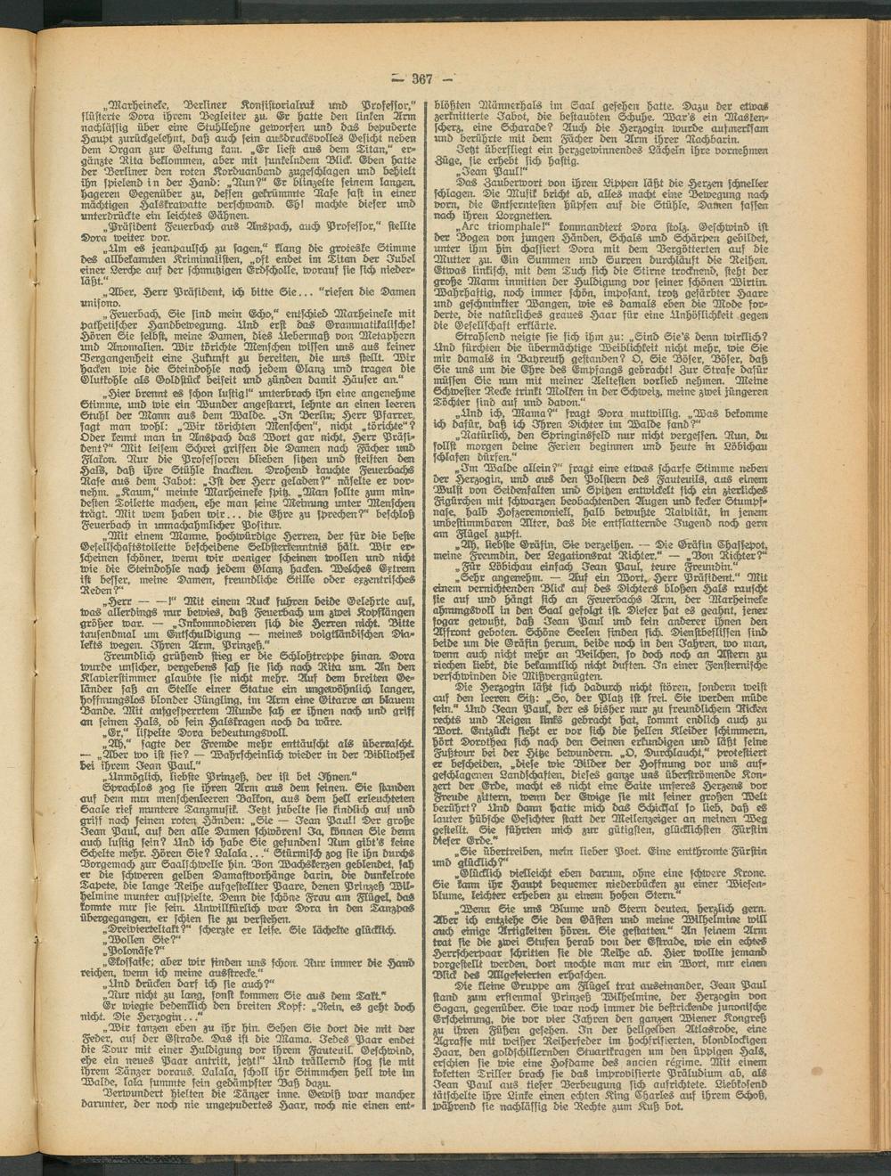 „2lh," sagte der Fremde mehr enttäuscht als überrascht. — „Aber wo ist sie? — Wahrscheinlich wieder in der Bibliothek bei ihrem Jean Paul."