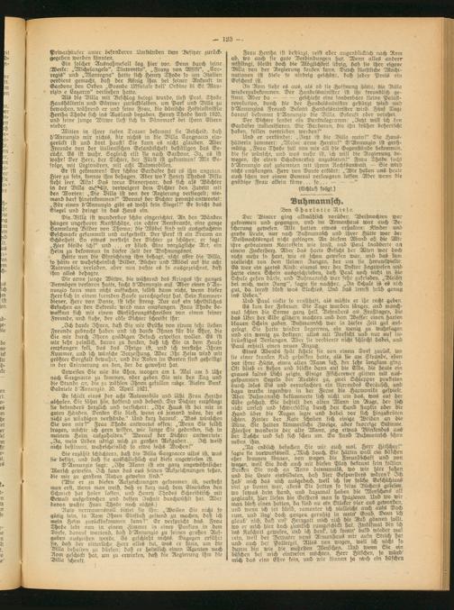 Die Billa ist wunderbar schön eingerichtet. An den Wänden hängen ungeheure Kunftschätze, ein echter Rembrandt, eine ganze Sammlung Bilder von Thoma; die Möbel find mit ausgesuchtem Geschmacks gesammelt und aufgestellt. Der Park ist ein Traum an Schönheit. So etwas versteht der Dichter zu schätzen; er sagt: „Hier bleibe ich!" und ... er blieb. Eine vorzügliche Art, ein Heim zu bekoinmen in dieser Zeit der Wohnungsnot.
