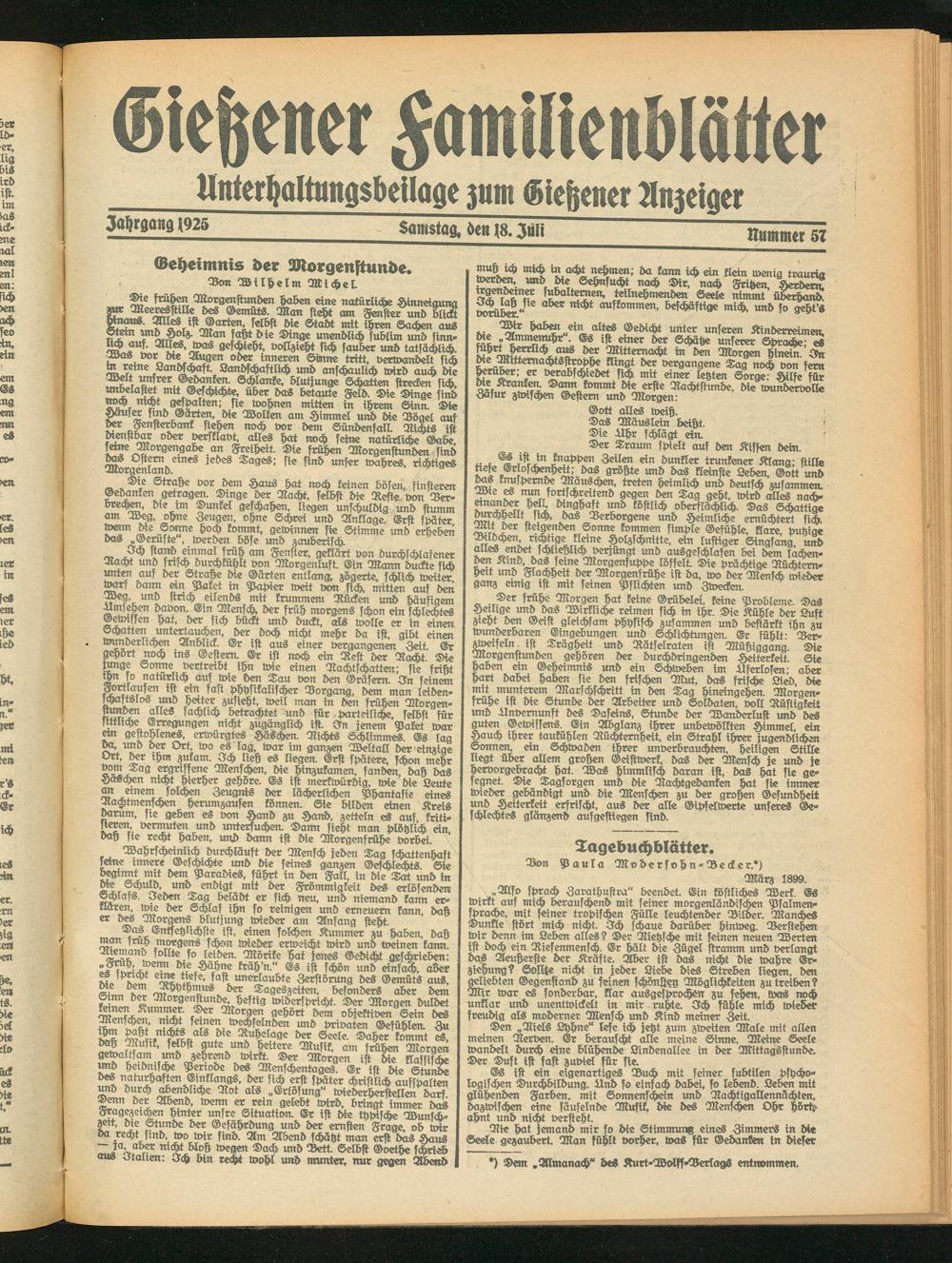 Unterhaltungsbeilage zum Gießener Anzeiger