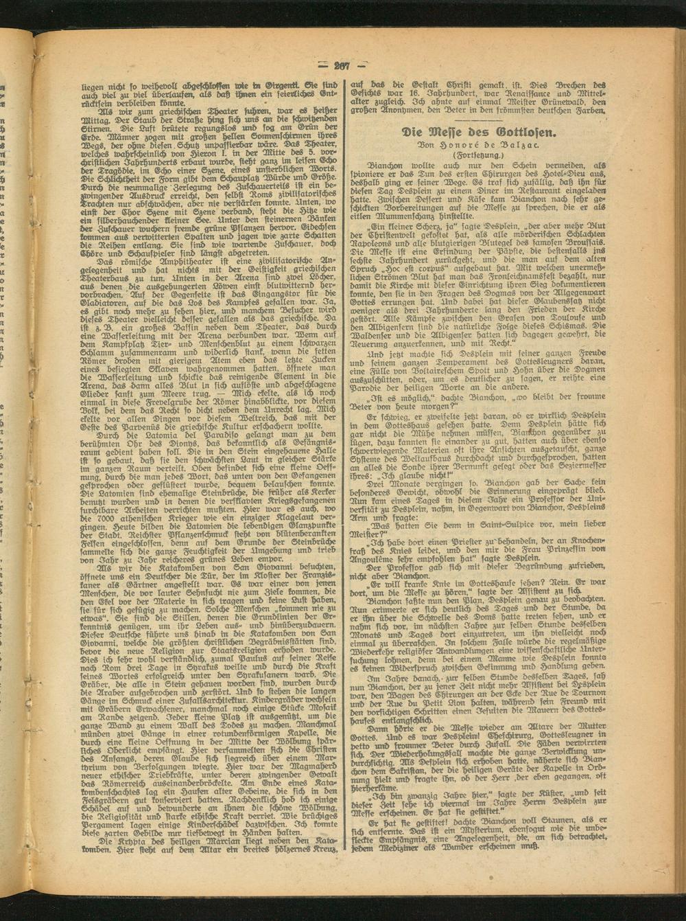 „Ein kleiner Scherz, ja" sagte Desplein, „der aber mehr Mut der Christenwelt gekostet hat, als alle mörderischen Schlachten Napoleons und alle blutgierigen Blutegel des famosen Droussais. Die Messe ist eine Erfindung der Päpste, die bestenfalls ins sechste Jahrhundert zurückgeht, und die man auf dem alten Spruch „Hoc est corpus" aufgebaut hat. Mit welchen unermeßlichen Strömen Blut hat man das Fronleichnamsfest bezahlt, nur damit die Kirche mit dieser Einrichtung ihren Sieg dokumentieren konnte, den sie in den Fragen des Dogmas von der Allgegenwart Gottes errungen hat. Und dabei hat dieser Glaubenssatz^nicht weniger als drei Jahrhunderte lang den Frieden der Kirche gestört. Alle Kämpfe zwischen den Grafen von Toulouse und den Albigensern sind die natürliche Folge dieses Schismas. Die Waldenser und die Albigenser hatten sich dagegen gewehrt, die Reuerung anzuerkennen, und mit Recht."