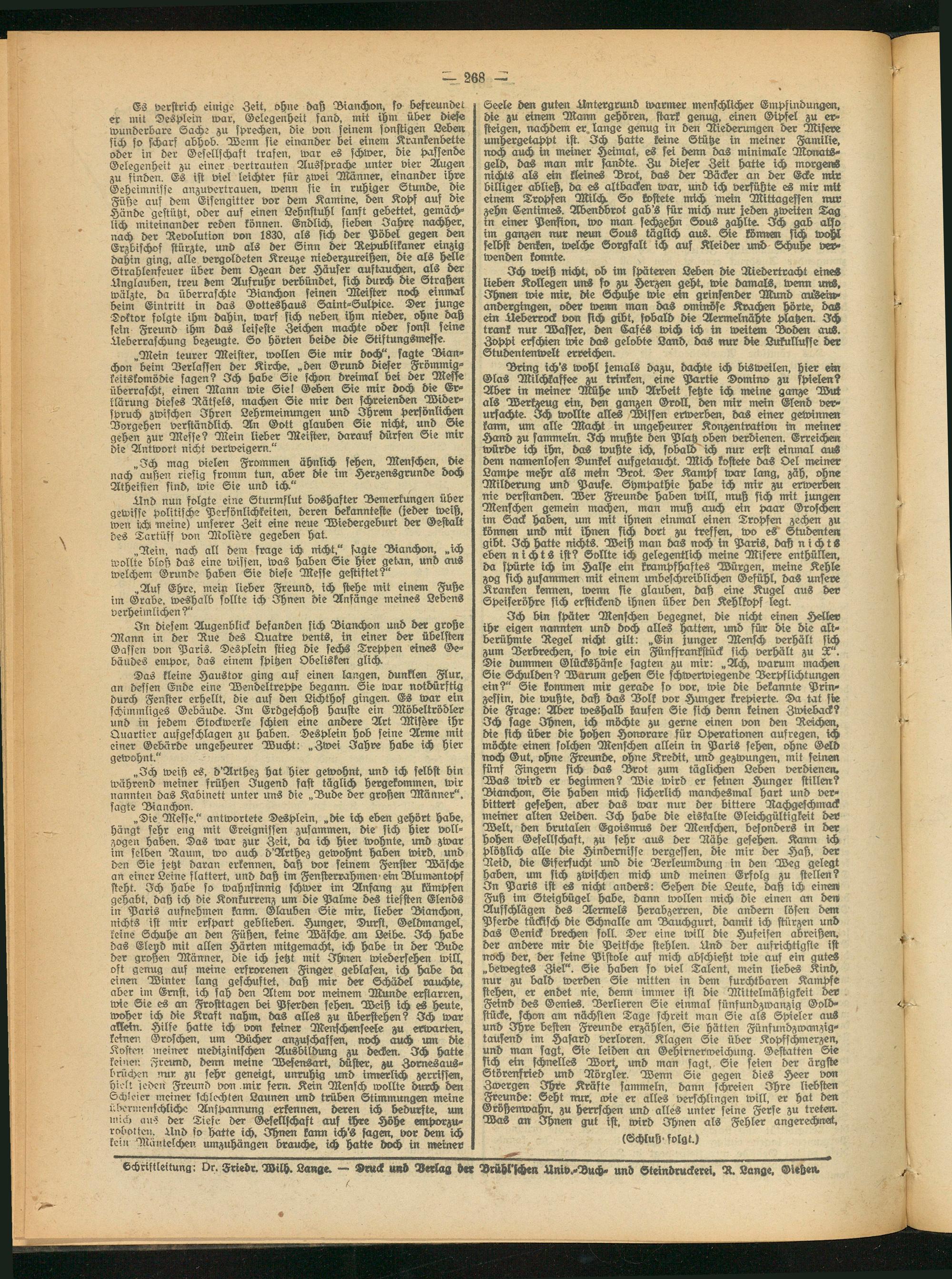 edjnftleitung: Dr. Stiebt. Wilh. Lange. — Druck und Verlag der Drühl'schen Aniv.-Buch- und Steinbruderei, R. Lange, Gießen.