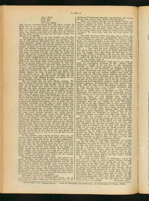 Dergleichen wunderliches Zeug verfolgte mich während der ganzen Krankheit, und monatelang nach meiner Genesung Der» ließ mich der Glaube nicht ganz, daß das Mädchen noch lebe, bis meine Muller, welcher ich inzwischen alles anvertraute, mich mit huiidert Gründen so schonend wie möglich eines andern belehrte. Auch wollte leider in der Folge wirklich kein Aennchen meyr zum Vorschein kommen. Mit erneuertem Schmerz vernahm ich nur spater, das gute Kind wäre vielleicht bei einer besseren Behandlung noch gerettet worden, doch beide Pflegeeltern wären $ct ™’?en ÜBaife längst gern los gewesen.