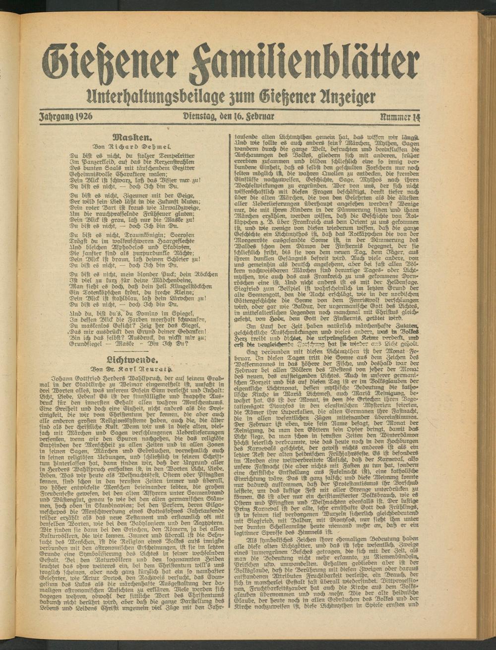 Unterhaltungsbeilage zum Gießener Anzeiger