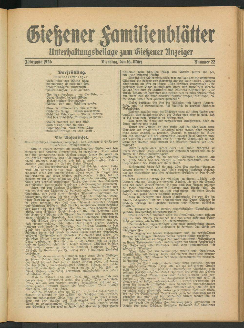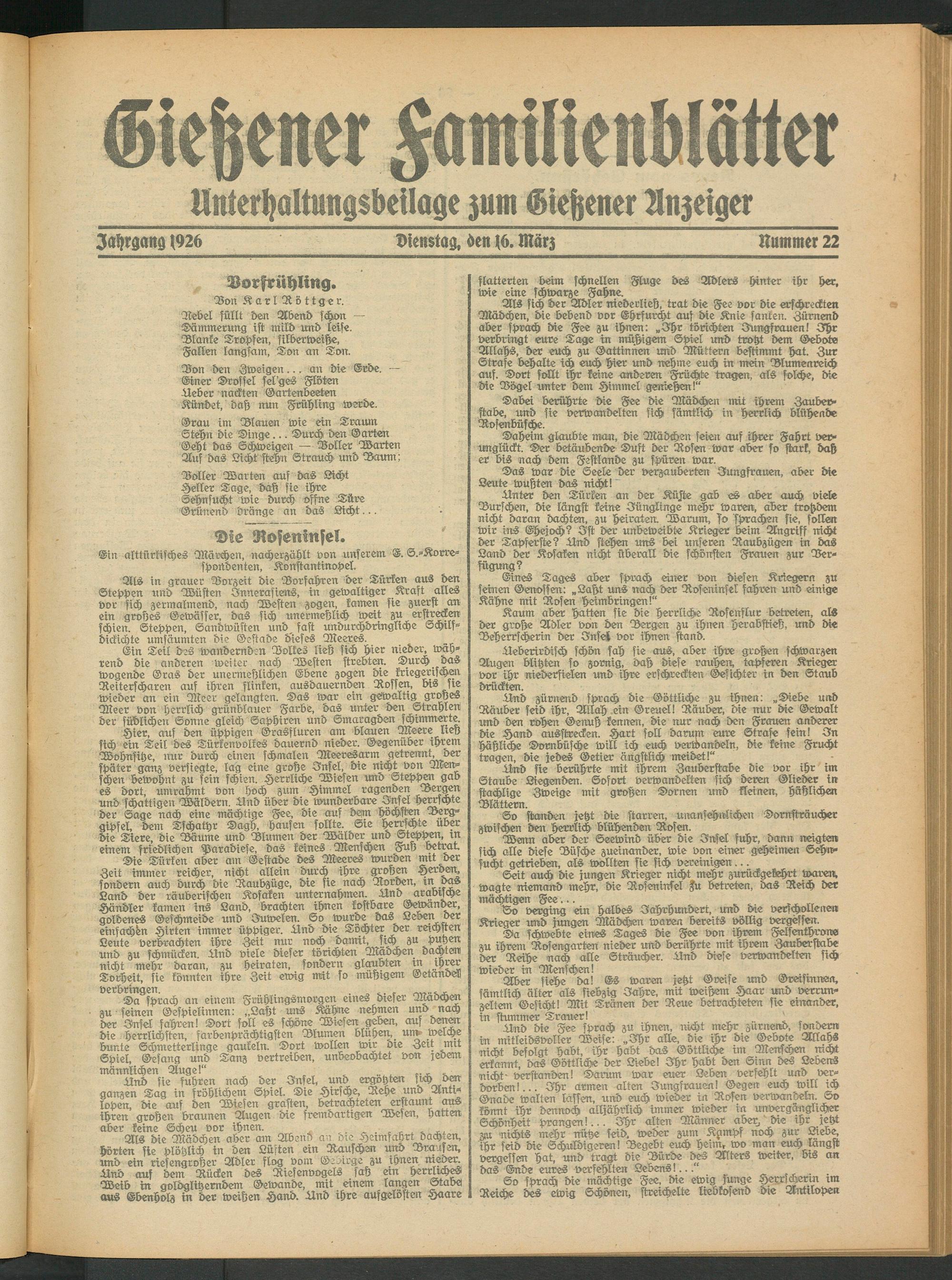 Jahrgang (926 Dienstag, -en (6. März Nummer 22