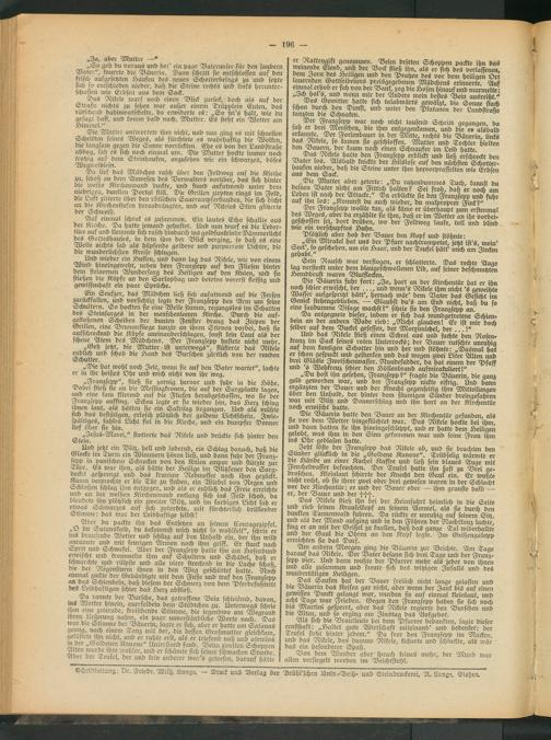 Das Rikele warf noch einen Blick zurück, doch als auf der Straße nichts zu sehen >var außer einem Trüpplein Enten, das rätschend dahinwatschclre, da erwiderte es: „So sei's halt, wie du gesagt hast, und komm bald nach, Mutter. Es steht ein Wetter a>n Limmcl."