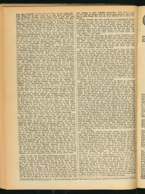 i Ich habe unrecht getan in dieser Stunde; die Klagen des Schwachen i machen niemand stark, aber sein Glaube macht stark und seine .')off= ! mmq erhebt. Was auch mein Schicksal ferner sei, du. o Gott, hast ! Großes an mir getan! Freude meines Herzens, du mein Haus, du bist i Gotteswerk! Er hat dich mir gegeben, er l-at dich mir bisyer erhalten. ' Bleibe in seiner Hand und ruhe in meinem Herzen als m ber Hand i Gottes liegend. Ich will den morgenden Tag meines Schicksals mcht i wissen- die Luft meines Herzens, mein Haus liegt in Gottes Hand, i Was auch feine äußern Schicksale seien, ich will nicht für seinen morgen- ’ ben Tag sorgen. Das Unveränderliche, das Ewige, das wir zu feine-Begründung suchten, wird bestehen. Aber Hinblicken will ich in dieser Stunde mit Dank und Liebe auf dich, du Lust meines Herzens, auf dich, Haus, das mir Gott gab. Du, o Gott kanntest mein Seufzen, meine Tränen lagen vor dir. Bon Jugend auf suchte ich den frohen «egen der Umgebungen, in denen ich jetzt lebe. Bon Jugend auf such.e ich ein Haus, bas im Geist und in ber Wahrheit dem gleiche, m dem ich fetzt leb«, aber so sehr ich suchte, ich fand auch keinen Stein nur den Grund zu ihm zu legen; ich hatte keinen Balken für sein Gerüst und keinen Ziegel m fein Dach- ich verschmachtete im eitlen Treiben nach menschlicher Hilfe. Da erbarmtest du dich meiner, und mein Haus fiel °us deiner 5)and in meine Arme, wie der Morgentau auf die durstende Saat. Jcy darf wohl sagen- Herr! Laß mich Armen nun hinfahren, nimm mir selber wem Haus hin, insofern es die vergängliche Hülle deines Segens ob mir ist, ich habe das Heilige, das Innere deines göttlichen Segens gesehen und will nicht mehr, und will, geliebtes Haus, auch deinetwillen nicht einen Augenblick für den morgenden Tag sorgen; aber Hinblicks will ich au dich in dieser ersten Stunde des neuen Jahres, das dn Golt segne, au dein menschliches Sein und auf alles Erhebende und »-gluckende, das ld) Segne dick^Gott, geliebtes Haus! Ich , erwidere dir in vollem Muß jeden Segen, den ich durch dich genoßen, febe frohe Stunde die du w gabst jedes Wonnegefühl, das du meinem Herzen verschafft, iede fW Aussicht, die du meinen Augen eröffnet. Er laste dir leuchten le^s Lich, das meinem Geist in deiner Witte aufging. Er vergelte dir oHe«. man« dein Leben sich gleichsam mit dem meinigen verfchmelzie. Ich encM es, deine Lebensflamme lodert für mein Leben. 0, ich sehe sie, ich fthe, du stehst wie eine Feuersäule vor mir, an der das L-cht von tauienb Flammöfen sich in eine Flamme verwandelt, in der die einzelnen, Lamp- chen verschwinden. Doch ich sehe näher, es ist e,ne andere Storheit Sonne, eine andere des Mondes, eme andere b 'tzender Sferne^em« andere des dunkeln Gestirns, — aber die Klarhett der Lampen erleudjtung der Säule ist nicht die Ktorhe.t des Himmels Es fi kein Stern zii klein für den ewigen Himmel, selber die Milchstraße,