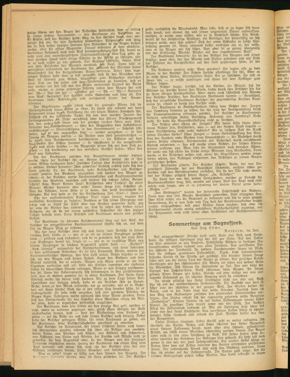 Da taucht Plötzlich das Hotel Stahlheim dicht vor mir auf. Bald fite id) auf 'der weltberühmten Felsenterrafse. Die Aussicht von dort ist sicher eine der schönsten in der ganzen Welt. Im Garten duften Rosen und in der Tiefe liegt das wilde Narodal. Deutlich kann ich den Weg von Gudvangen zwifchen den pittoresken Felsenkolosten t e • folgen. Zur Linken erhebt sich der eigenartig geformte un^e Bergriese. „Jordalsnut". Einsam klimme ich auf steilen, Felsenwegen immer: hoh.r hinauf In grausiger Tiefe braust unter Mir der stiluh. Zur Rechten stürzt die Felsenwand senkrecht ab. Wie ein Spielzeug liegt Man tief unter mir tes Hotel Stahlheim Aus zerrissenen Felsen stürzt wM®“1* belnber Höhe krachend und tobend der Fall. Weithin duftet das x>eu ^XiefTs&n ringsum, lieber Geröll geht es°ufE^K überhole ein Kariol. Ruhig und sicher freitet bas ttane einen kleinen Fslsenweg herab, dann über eine schmale, gelartwnoi Brücke wo selbst einem Menschen schwindlig werben konnte. Der Baue lotet mich in sein altes Holzhaus zu Saft. 200 SW«