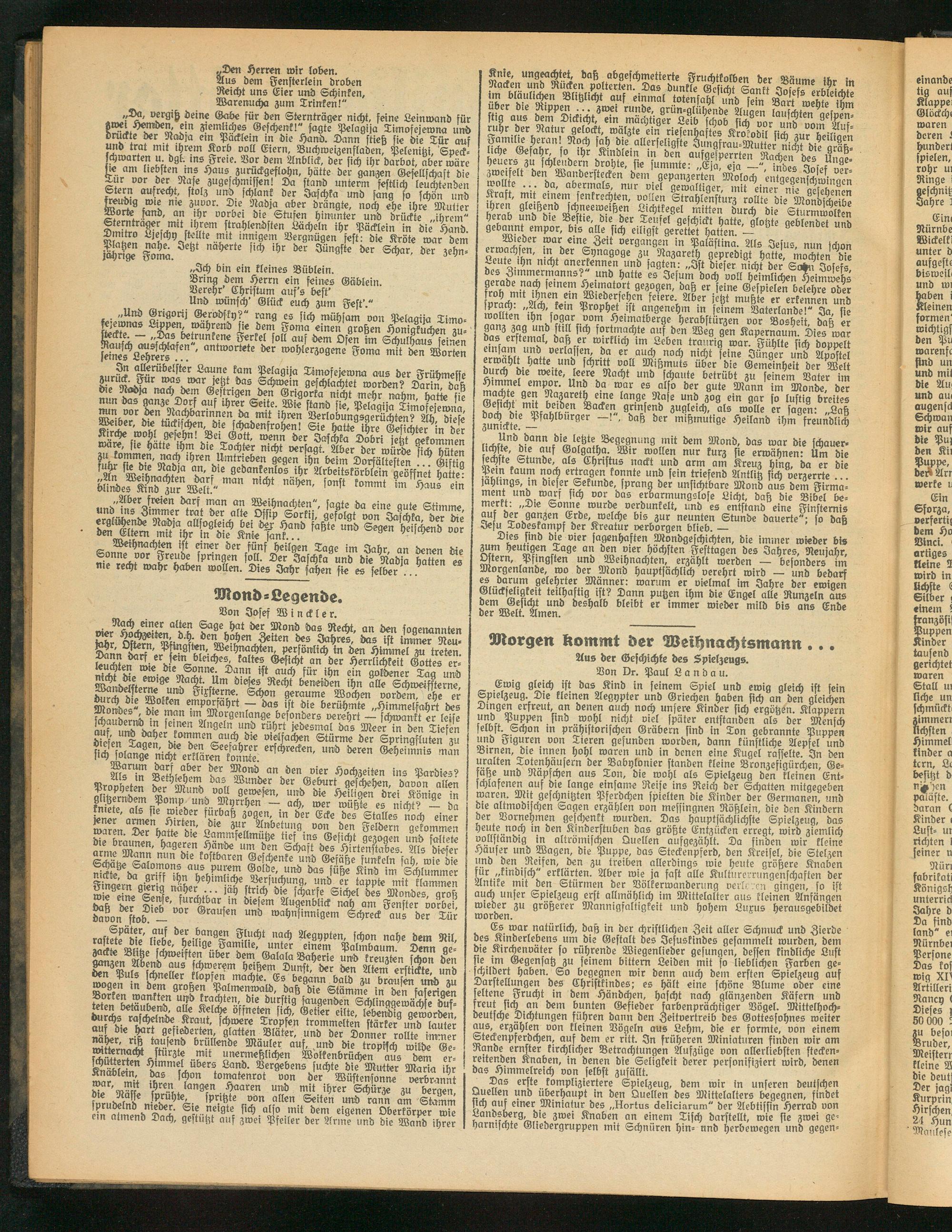 „r, Vn m -'Nund voll gewesen, und die Heiligen drei Könige in kniete" „Ponip^ und Myrrhen — ach, wer wüßte es nicht? — da jener armen' Sn fh- 6 3°PL 7 ber ede des Stalles noch einer marL 7 Anbetung von den Feldern gekommen