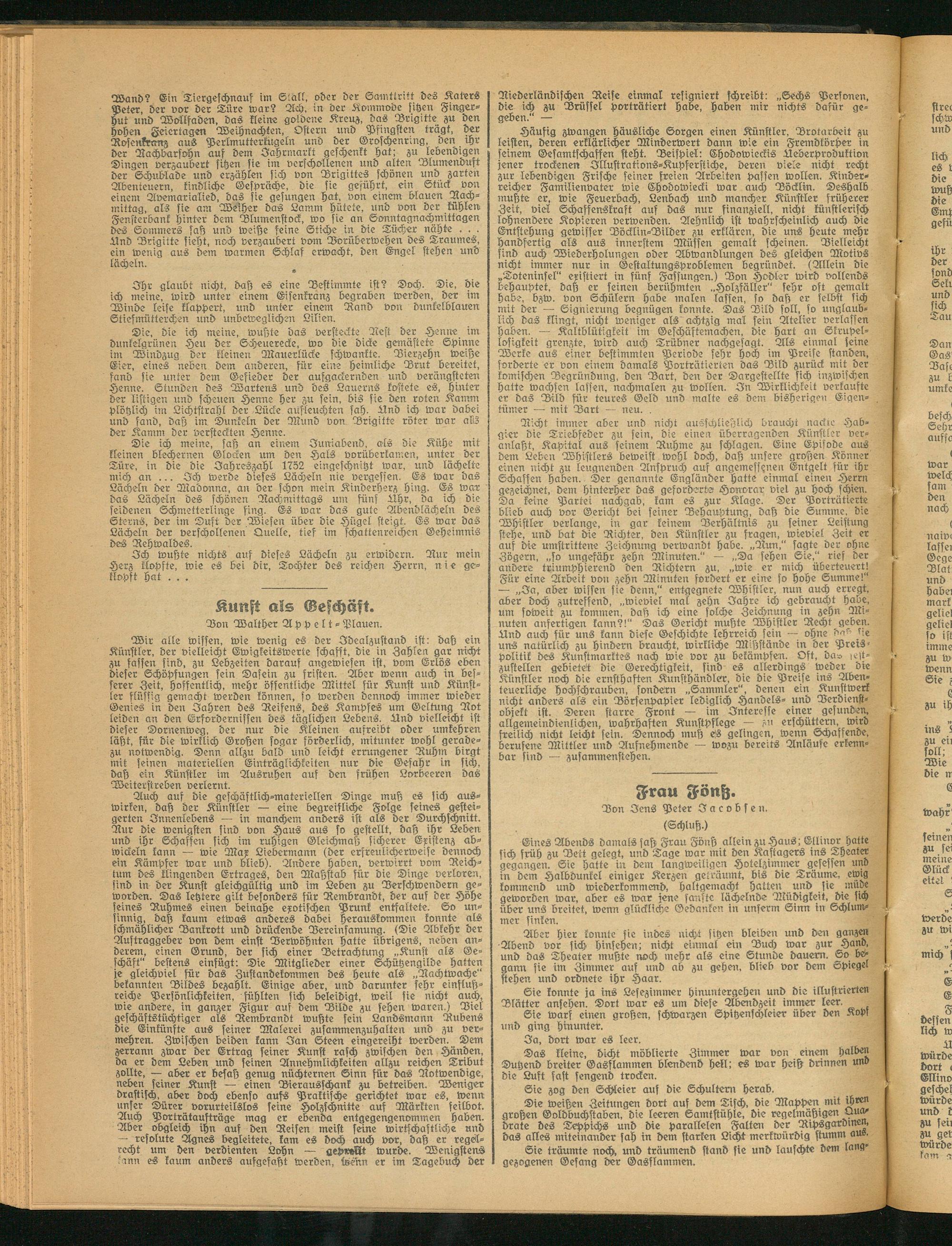 Eines Abends damals saß Frau Föntz allein zu Haus; Ellinor hatte sich früh zu Belt gelegt, und Sage war mit den Kastagers ins Theater gegangen. Sie hatte in dem langweiligen Hotelzimmer gesessen und in dem Halbdunkel einiger Kerzen geträumt, bis die Träume, ewig kommend und wiederkommend, haltgemacht halten unb sie müße geworden war, aber es war jene sanfte lächelnde Müdigkeit, die sich über uns breitet, wenn glückliche Gedanken in unferm Sinn in Schlummer finken.