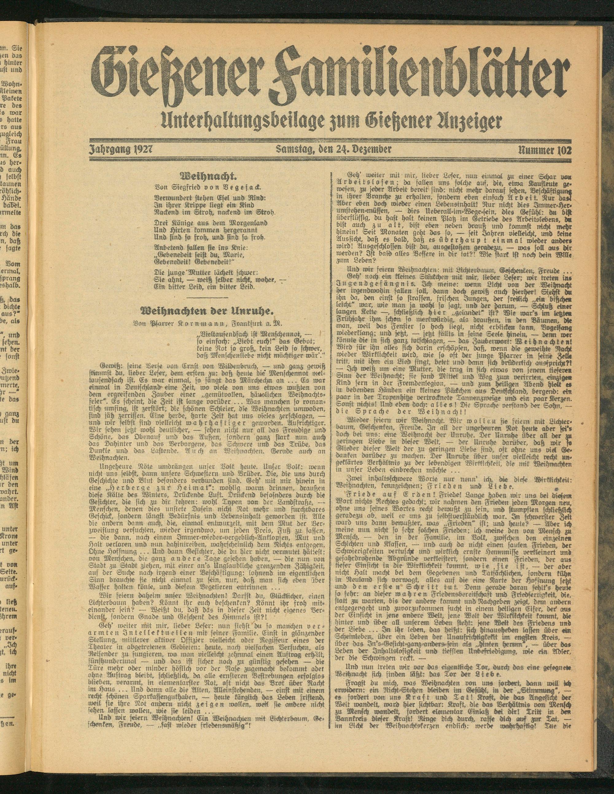 Jahrgang 192Z 24. Dezember Nummer M