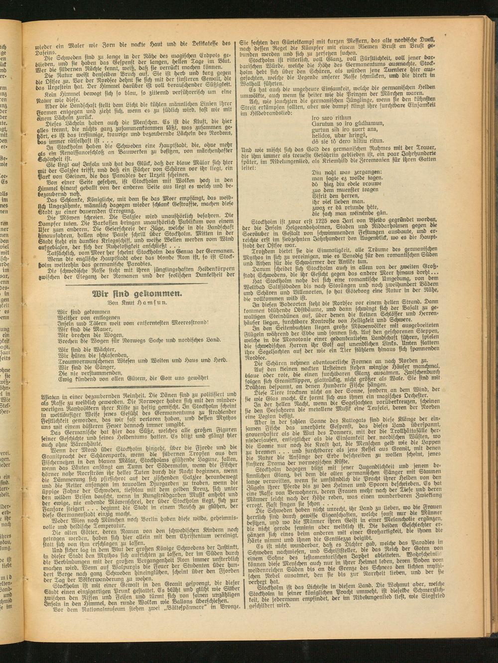 ^Stockholm ist das Lichteste in diesem Land Die Wehmut aber -«lche <-Unckhnlw in seiner königlichen Pracht umweht, ,st diesew« Schmerzum- keit, die jedermann empfindet, der im Nibelungenlied lieft, rote oiegfrie geschildert wird.