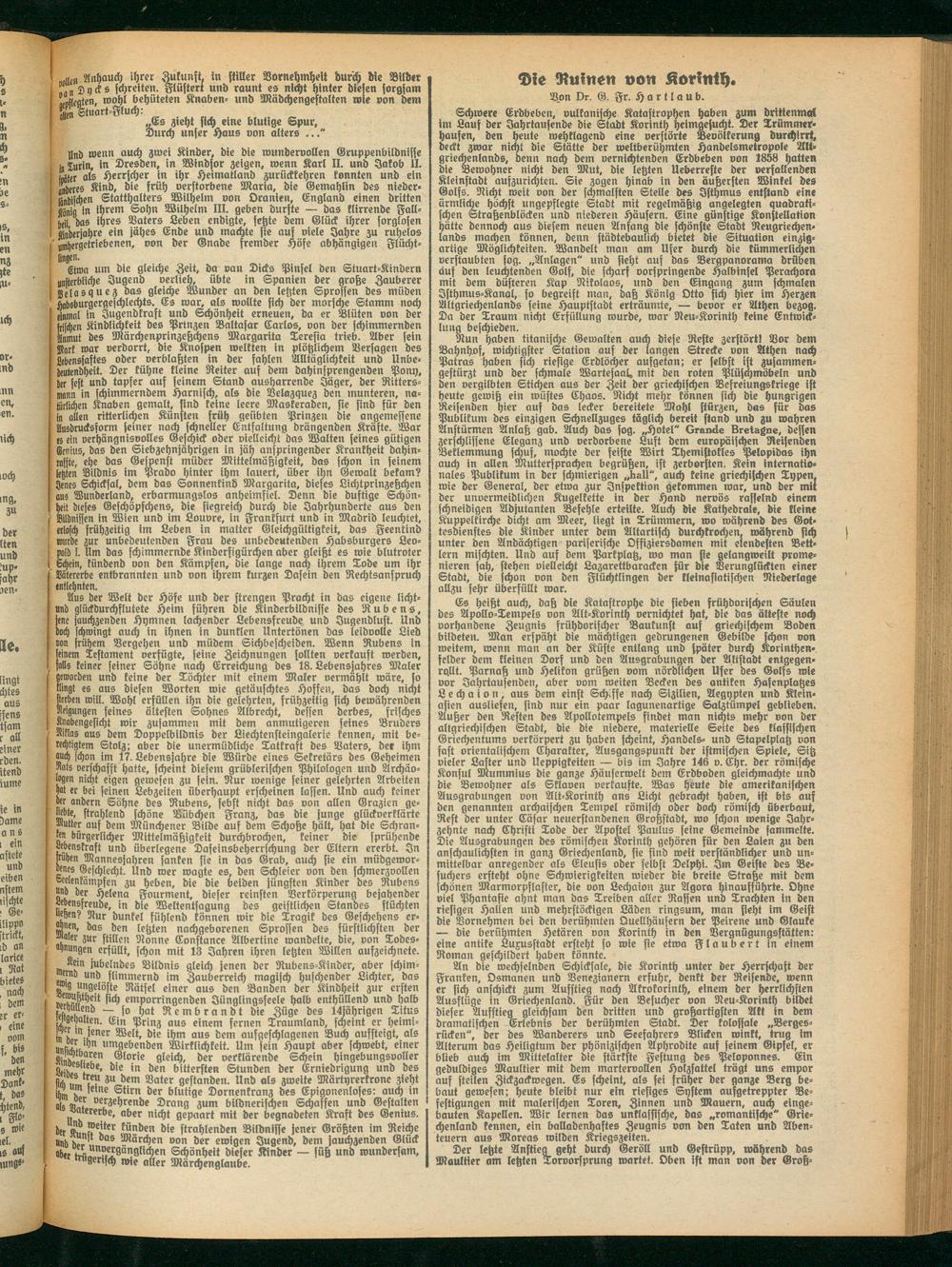 Es heißt auch, daß bie Katastrophe bie sieben frühborischen Säulen des Apollo-Tempels von Alt-Korinth vernichtet hat, die bas älteste noch vorhanbene Zeugnis frühborifcher Baukunst auf griechischem Boden bildeten. Man erspäht die mächtigen gedrungenen Gebilde schon von weitem, wenn man an der Küste entlang und später durch Korinthen- felber dem kleinen Dorf und den Ausgrabungen der Altstadt entgegen« ro.llt. Parnaß und Helikon grüßen vorn nördlichen Ufer des Golfs wie vor Jahrtausenden, aber vom weiten Becken des antiken Hafenplatzes L e ch a i o n, aus dem einst Schiffe nach Sizilien, Aegypten und Kleinasien auslicfen, sind nur ein paar lagunenartige Salztümpel geblieben. Außer den Resten des Apollotempels findet man nichts mehr von der altgriechischen Stabt, bie die niedere, materielle Seite des klassischen Griechentums verkörpert zu haben scheint, Handels- unb Stapelplatz von fast orientalischem Charakter, Ausgangspunkt ber istmischen Spiele, Sitz vieler Laster unb Ueppigteiten — bis im Jahre 146 v. Chr. ber römische Konsul Mummius bie ganze Häuserwelt bem Erbboben gleichmachte und bie Bewohner als Sklaven verkaufte. Was heute bie amerikanischen Ausgrabungen von Alt-Korinth ans Licht gebracht haben, ist bis auf ben genannten archaischen Tempel römisch ober boch römisch überbaut, Rest der unter Cäsar neuerftanbenen Großstadt, wo schon wenige Jahrzehnte nach Christi Tode ber Apostel Paulus seine Gemeinbe sammelte. Die Ausgrabungen des römischen Korinth gehören für ben Laien zu ben anschaulichsten in ganz Griechenland, sie sind weit verständlicher unb unmittelbar anregenber als Eleusis ober selbst Delphi. Im Geiste des Besuchers ersteht ohne Schwierigkeiten roieber die breite Straße mit bem schönen Marmorpflaster, bie von Lechaion zur Agora hinaufführte. Ohne viel Phantasie ahnt man das Treiben aller Rassen unb Trachten in den riesigen Hallen und mehrstöckigen Läden ringsum, man sieht im Geist die Vornehmen bei den berühmten Ouellhäusern der Peirene und ©laute — die berühmten Hetären von Korinth in den Vergnügungsstätten: eine antike Luxusstabt ersteht so wie sie etwa Flaubert in einem Roman geschildert haben könnte.