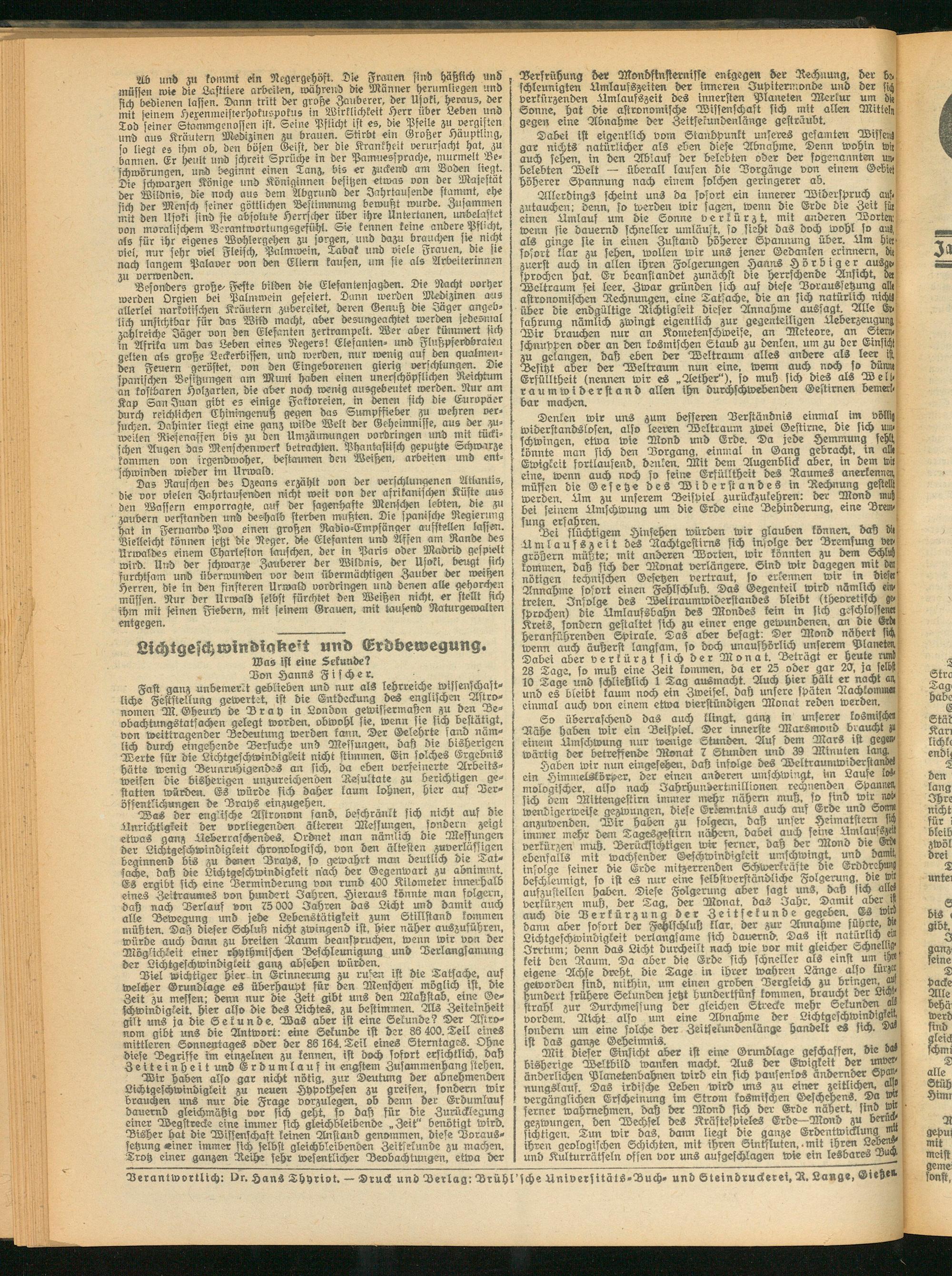 Verantwortlich: Dr. HanS Shyriot. — Druck und Berlag: Brühl'fche Universitäts-Buch- und Steindruckerei, R. Lange, Gieße".