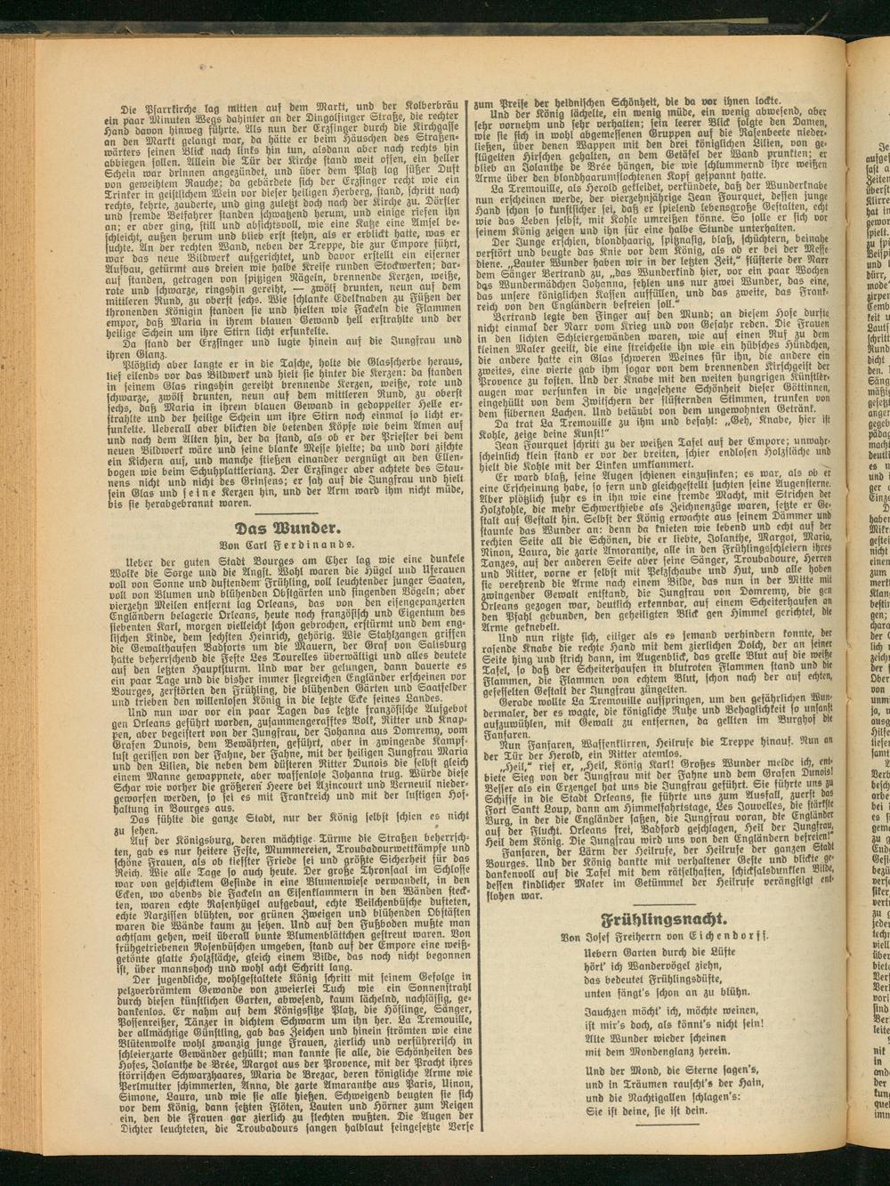 Heber der guten Stadt Bourges am Cher lag wie eine dunkele Wolke die Sorge und die Angst. Wohl waren die Hügel und Uferauen voll von Sonne und duftendem Frühling, voll leuchtender junger Saaten, voll von Blumen und blühenden Obstgärten und singenden Vögeln; aber vierzehn Meilen entfernt lag Orleans, das von den eisengepanzerten Engländern belagerte Orleans, heute noch französisch und Eigentum des siebenten Karl, morgen vielleicht schon gebrochen, erstürmt und dem englischen Kinde, dem sechsten Heinrich, gehörig. Wie Stahlzangen griffen die Gewalthaufen Badforts um die Mauern, der Gras von Salisburg hatte beherrschend die Feste Les Tourelles überwältigt und alles deutete auf den letzten Hauptsturm. Hnb war der gelungen, dann dauerte es ein paar Tage und die bisher immer siegreichen Engländer erscheinen vor Bourges, zerstörten den Frühling, die blühenden Gärten und Saatfelder uiid trieben den willenlosen König in die letzte Ecke seines Landes.