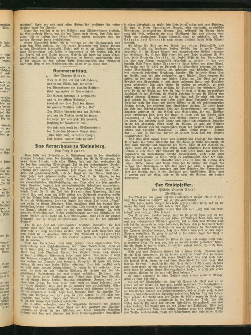 Der Frau aber ward's bange, und ob sie gleich schon jetzt in den ersten Monaten ihrer Ehe ein gar festes, starkwilliges Weib war, wie sie auch ein unbeugsames Mädchen gewesen, lief sie doch dem Manne nach und bat ihn weinend, er möge dableiben, sie habe ihm ja kein böses Wort geben wollen. Ader der Stadtpfeifer war so jählings die Wendeltreppe des Turmes hinabgesprungen, daß ihre Bitten ungehört in den engen Mauern verhallten. Da ging sie zurück in die Stube, legte den Kopf in die Hände und weinte bitterlich.