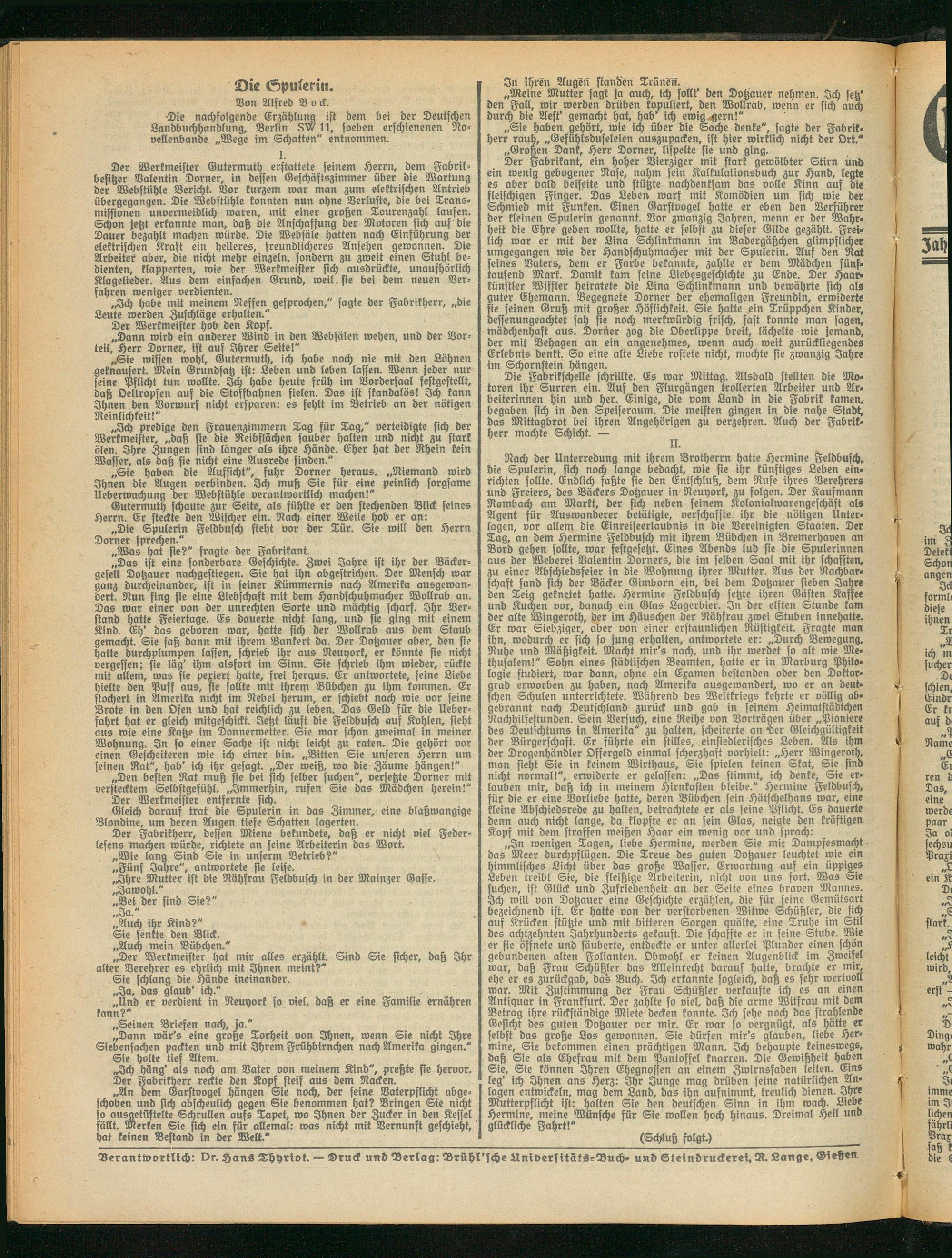 Verantwortlich: Dr. Hans Thhrtvt — Druck und Verlag: Drühl'sche AniversitSts-Buch- und Steindruckerei, D. Lange, «Dietzen.