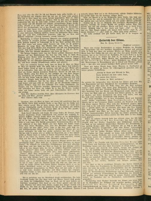 So viel ist sicher, daß Heinrichs Geburtstag in bas Jahr 1129 faui, ber Tag ist ungewiß, es werden verschiedene Daten genannt. Aber wes tut für uns dieser Tag! Wir dürfen froh sein, daß vor nunmehr »w Jahren ein wahrhaft Großer bas Licht beutschen Lebens erblickte.
