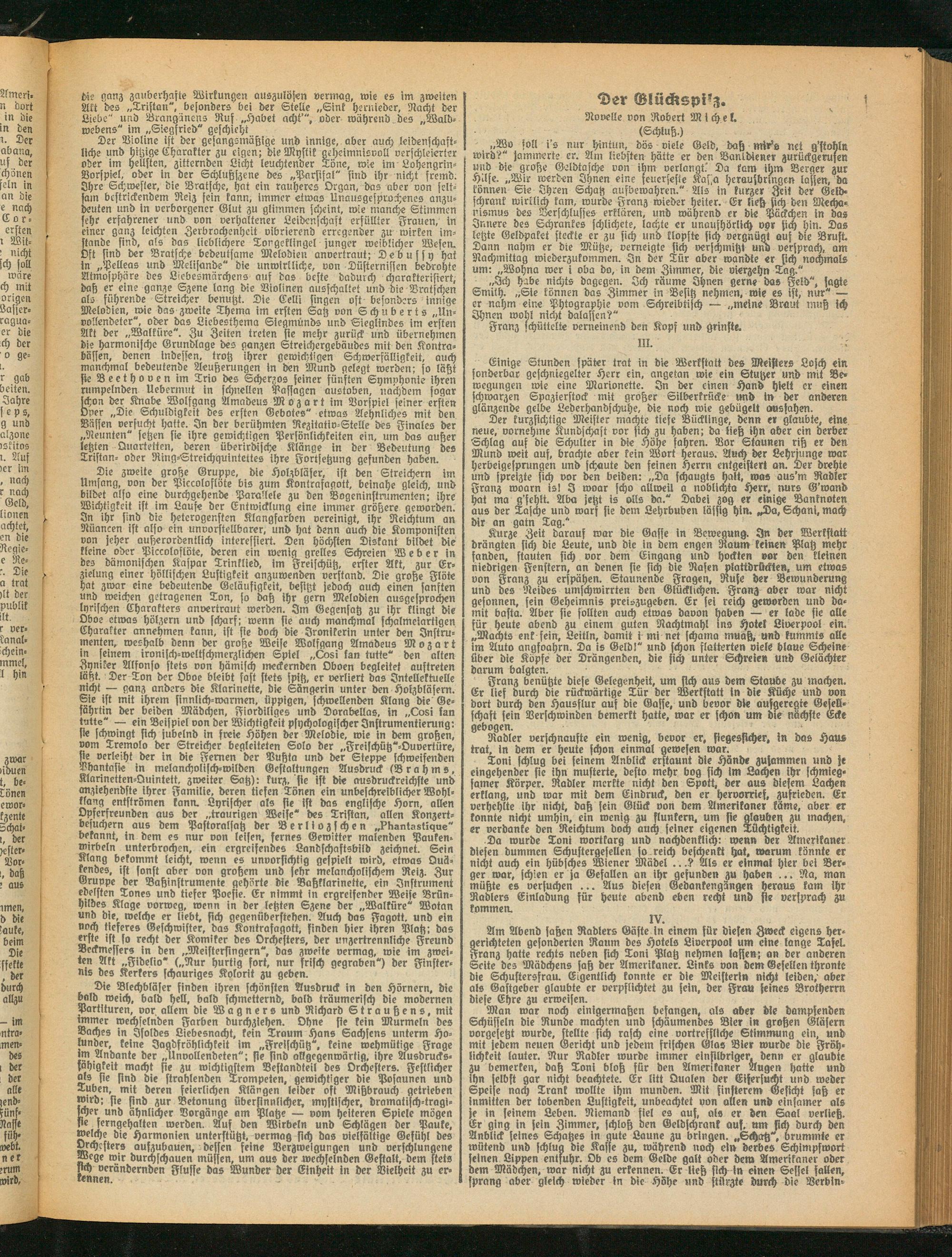 Da wurde Toni wortkarg und nachdenklich: wenn der Amerikaner diesen dummen Schustergesellen so reich beschenkt hat, warum könnte er nicht auch ein hübsches Wiener Mädel ...? Als er einmal hier bei Berger war, schien er ja Gefallen an ihr gesunden zu haben ... Ra. man müßte es versuchen ... Aus diesen Gedankengängen heraus kam ihr Radlers Einladung für heute abend eben recht und sie versprach zu kommen.