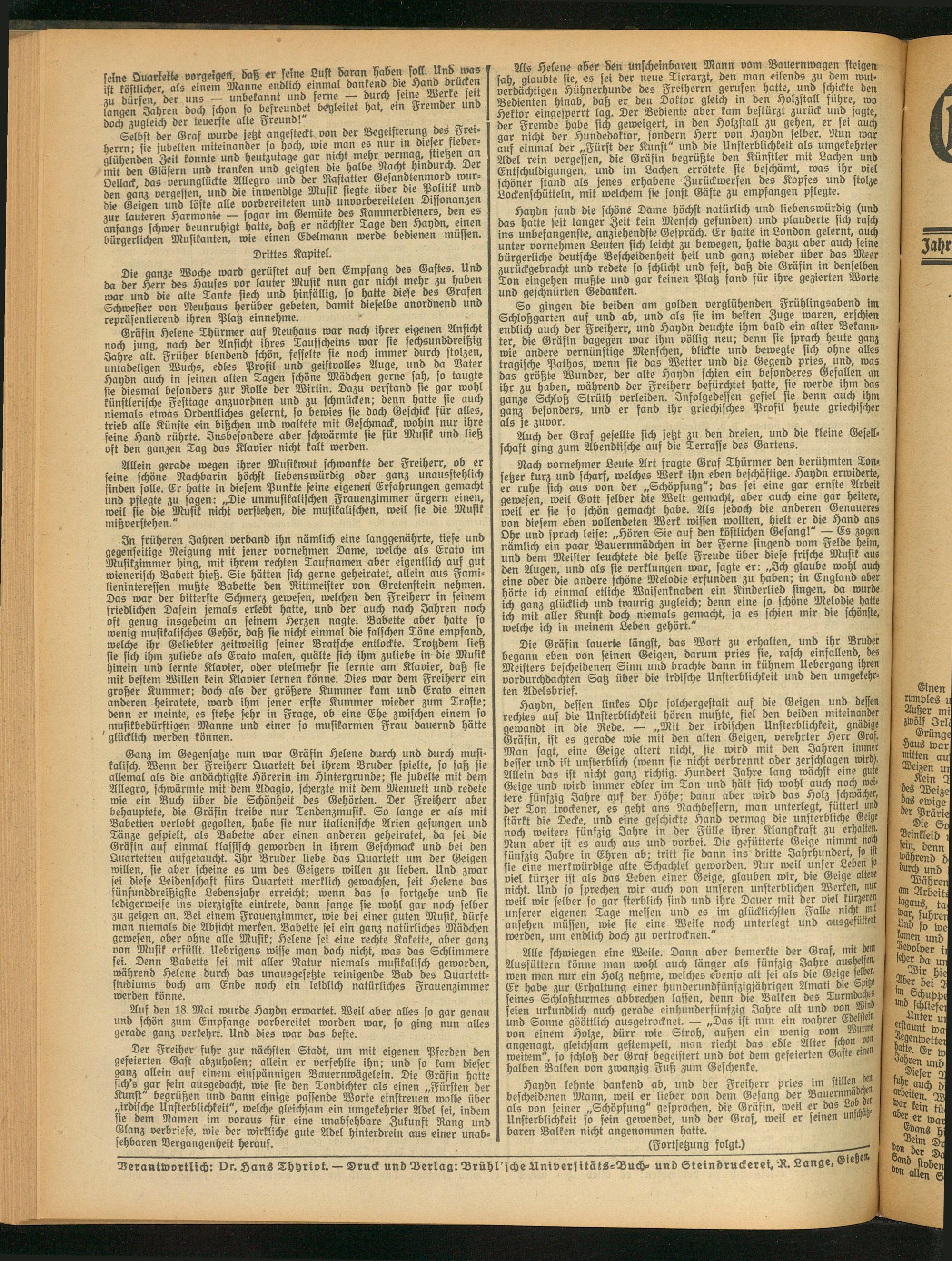 Verantwortlich: Dr. Hans Thyrivt. — Druck und Verlag: Brühl'sche Universitäts-Buch- und Steindruckerei. Lange, Gieb^