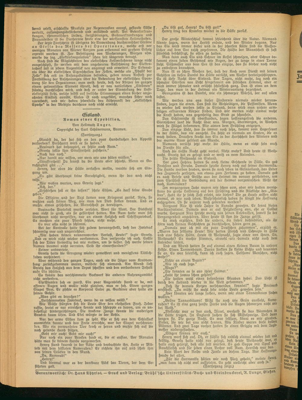 Verantwortlich: Dr. HanS Thyrivt. — Druck und Verlag: Brühl'fche Llniverf itäts-Vuch» und Steindruckerei. R. Lange, Giehen-