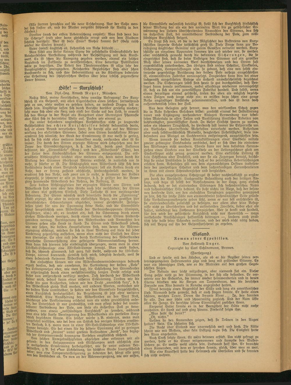 Die oben ausgesprochene Schutzregel ist daher nachdrücklichst zu ergänzen durch die Vorschrift: Sachgemäße Behandlung auch der fertigen Anlage, und dazu ist selbst der Nichtfachmann in der Sage, ganz einfach dadurch, daß er bei eintretenden Störungen sich fachmännischen Rates und fachmännischer Hilfe bedient. Es steht nichts im Wege, daß der besonnen denkende Laie, um den einfachsten Vorgängen gegenüber gewappnet zu fein, sich für solche Fälle von einwandfreier fachmännischer Seite gründliche Verhaltungsmaßregeln geben läßt, wenn er nur fest entschlossen ist, sie eintretendenfalls peinlichst zu befolgen, vor allem aber seine Befugnisse nicht zu überschreiten und bei auftretenden Zweifeln, lieber eher als fpäter, unbedingt den Fachmann hinzuziehen. Wer so denkt und handelt, für den wird der gefürchtete Kurzschluß nicht nur theoretisch — wozu vorstehende Ausführungen hoffentlich beitragen —, sondern auch praktisch sehr bald seine Schrecken verlieren, und der wird nicht nötig tjaben, sich mit Bezug auf ihn der Gefpensterfeherei zu ergeben.