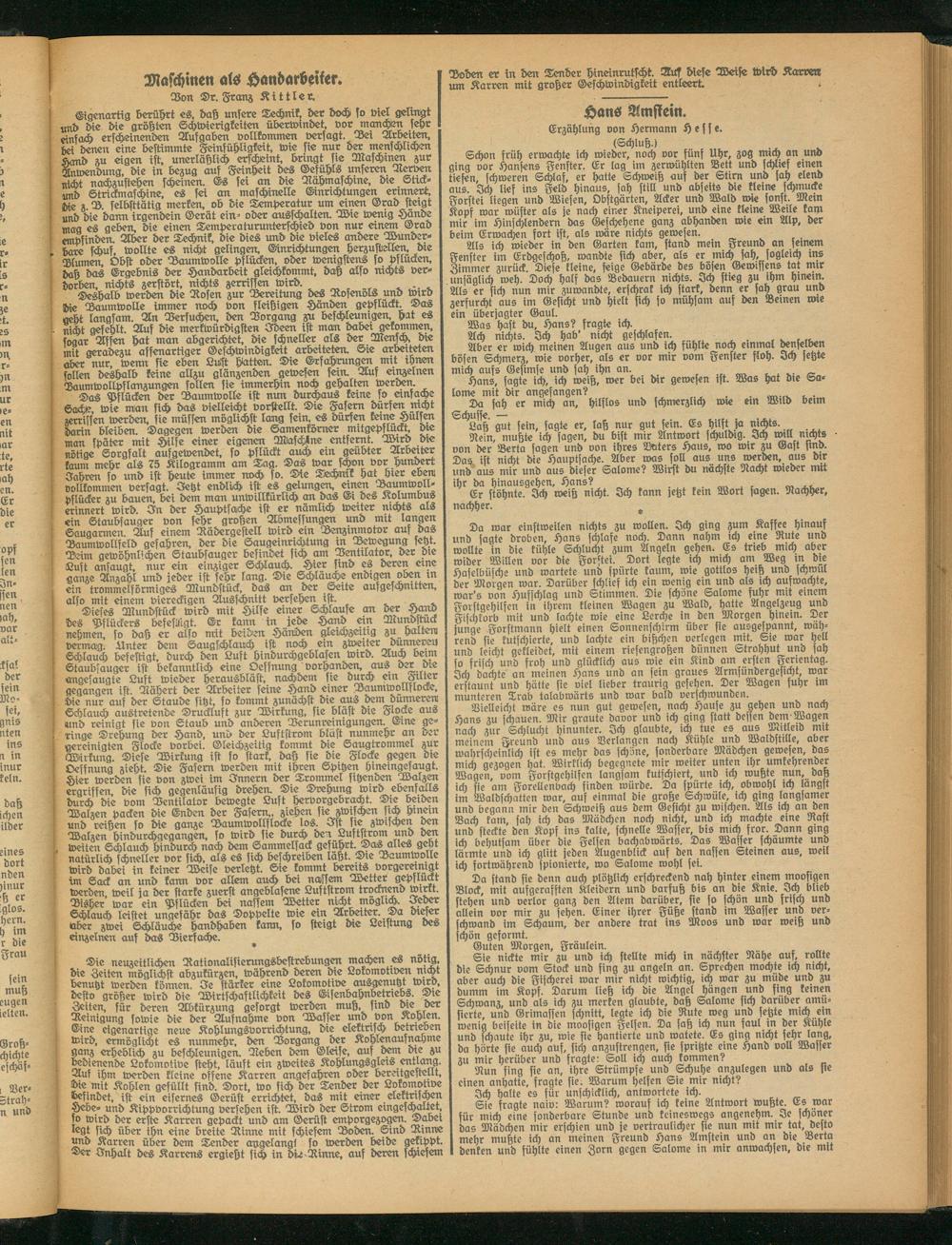 Nein, mußte ich sagen, du bist mir Antwort schuldig. Ich will Nichts von der Berta sagen und von ihres Vvters Haus, wo wir zu Gast sind. Das ist nicht die Hauptsache. Aber was soll aus uns werden, aus dir und ans mir und aus dieser Salome? Wirst du nächste Nacht wieder mit ihr da hinausgehen, Hans? m „