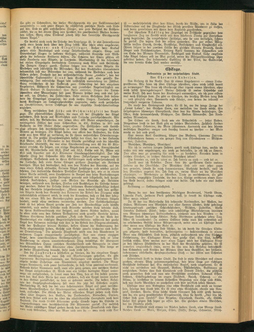 Am Anfang ist die Nacht. Das ist etwas Ungeheures — etwas Unbe- greifbares. Wie kann ich über Chikago schreiben, ohne mich selbst damit zu vermengen? Wie kann ich überhaupt über irgend etwas schreiben, ohne mich selbst hineinzubringen? Meine Ichsucht ist meine Schwäche und meine Kraft. Ich war kaum der Knabenzeit entwachsen, als ich zum erstenmal nach Chikago kam. Da gibt es Straßen, die dreißig Mellen lang sind — und gänzlich eben. Bauwerke und Häuser, von denen du träumst — fratzenhaft verzerrte Träume.