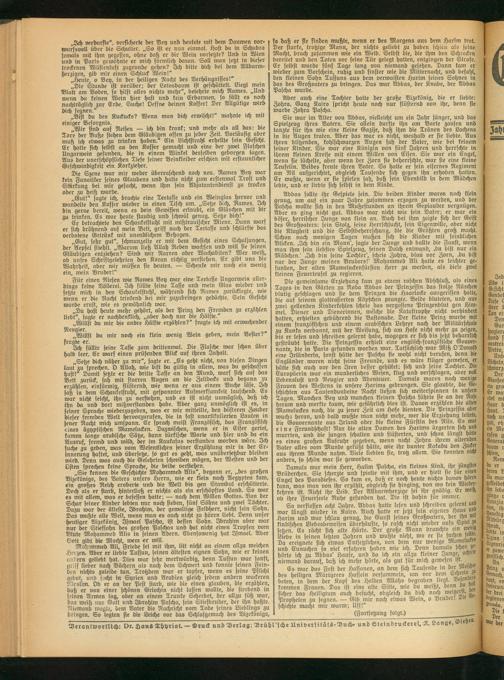 Es war das Fest der Hassanen, an dem sich Tausende in der Mosche des heiligen Märtyrers Hussein versammeln, um vor dem Schrein beten, in dem der Kopf des Helden Allahs begraben liegt. 23e(on » kommen Frauen. Das ist eine alte Sitte, wie du weißt, denn ou v sicher das Heiligtum auch besucht, obgleich du dich noch weigerst, Propheten zu segnen. — Gib mir noch etwas Wein, o Bruder. Aue schichte macht mir warm; Uff!"