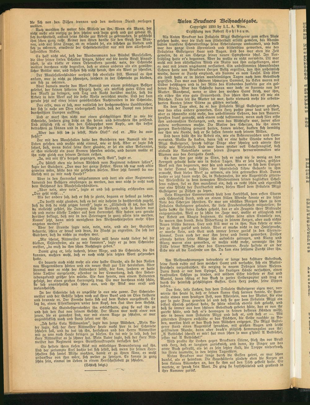 Erzählung von Robert H o h l b a u m.