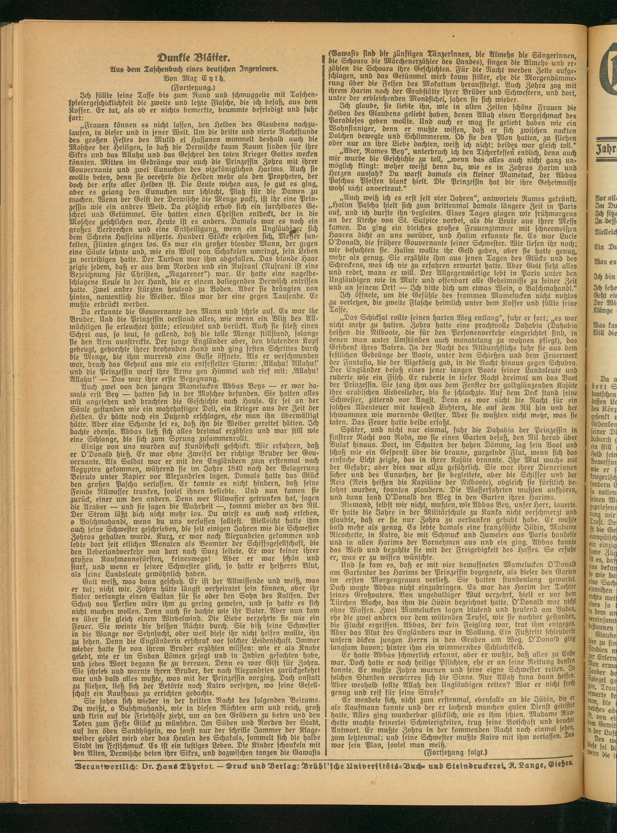 Verantwortlich: Dr. Kan» Thyrtvt. — Druck und Verlag: Vrühl'sche AniverfitütS-Buch- und Steindruckerei. jt. Lange, ©iefien-