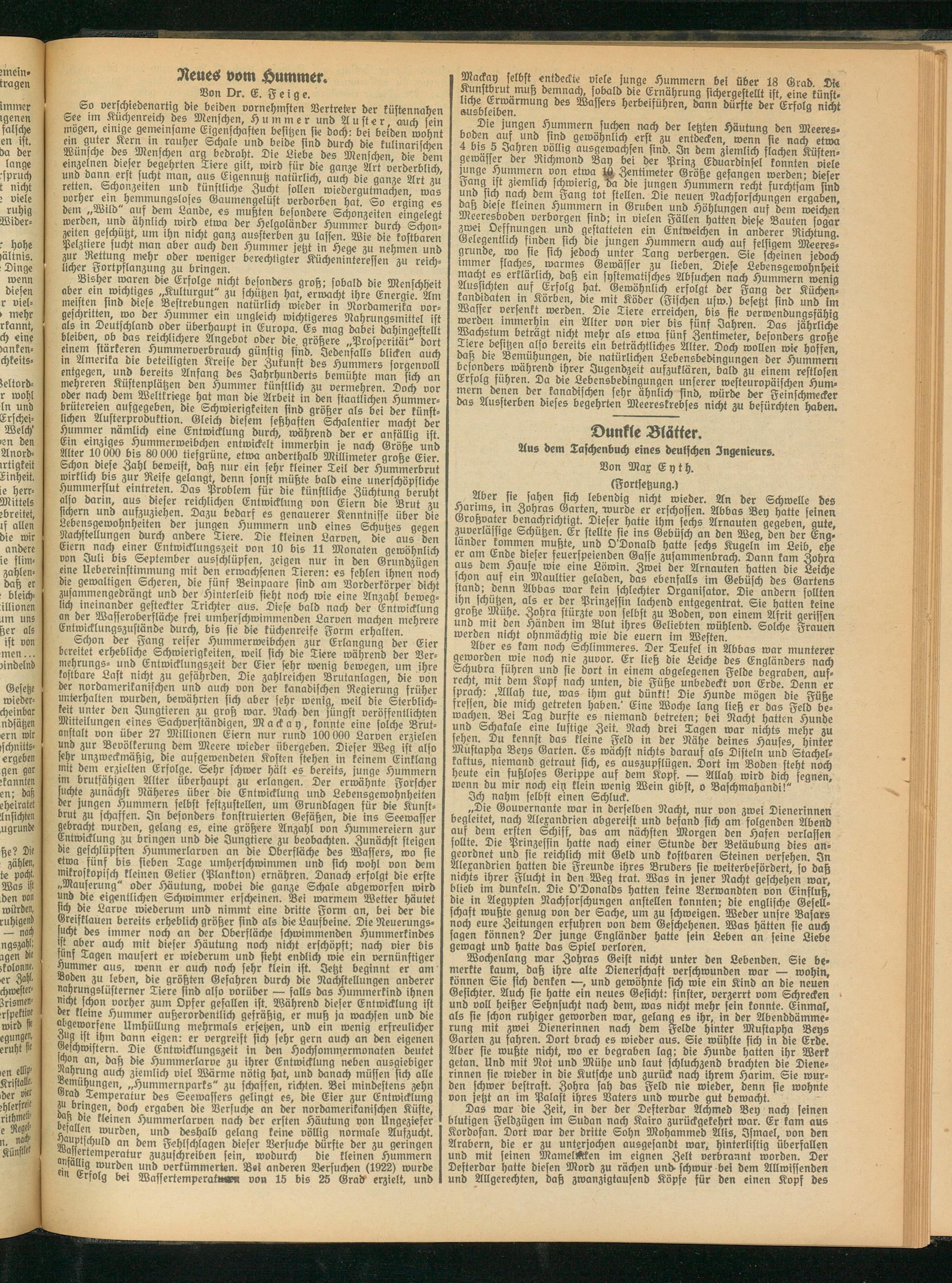 „Die Gouvernante war in berfelben Nacht, nur von zwei Dienerinnen begleitet, nach Alexanbrien abgereift und befand sich am folgenden Abend auf bem ersten Schiff, bas am nächsten Morgen ben Hafen verlassen sollte. Die Prinzessin hatte nach einer Stunde der Betäubung dies an- geordnet und sie reichlich mit Geld und kostbaren Steinen versehen In Alexandrien hatten bie Freunbe ihres Brubers sie roeiterbeförbert, so daß nichts ihrer Flucht in ben Weg trat. Was in jener Nacht geschehen war, blieb im dunkeln. Die O'Donalbs hatten keine Verwandten von Einfluß, die in Aegypten Nachforschungen anstellen konnten; bie englische Gesellschaft wußte genug von ber Sache, um zu schweigen. Weber unsre Basars noch eure Zeitungen erfuhren von dem Geschehenen. Was hätten sie auch sagen können? Der junge Engländer hatte fein Leben an feine Liebe gewagt und hatte das Spiel verloren.